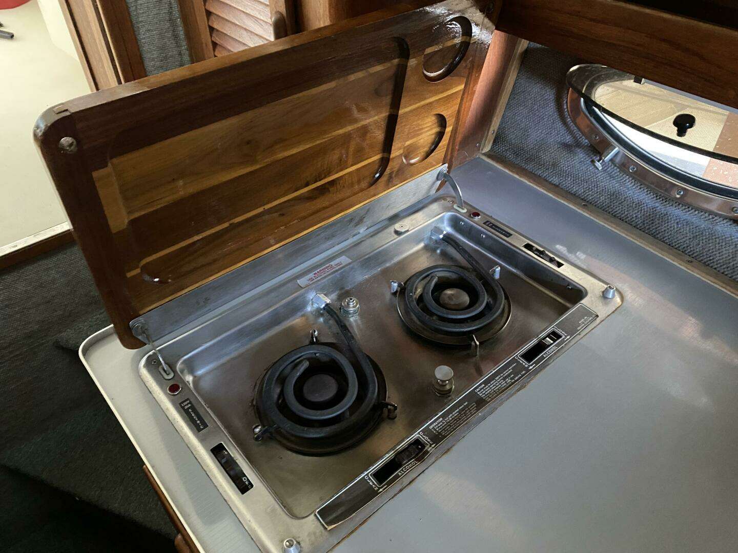 - Alcohol/Electric 2 burner stove with cutting board cover