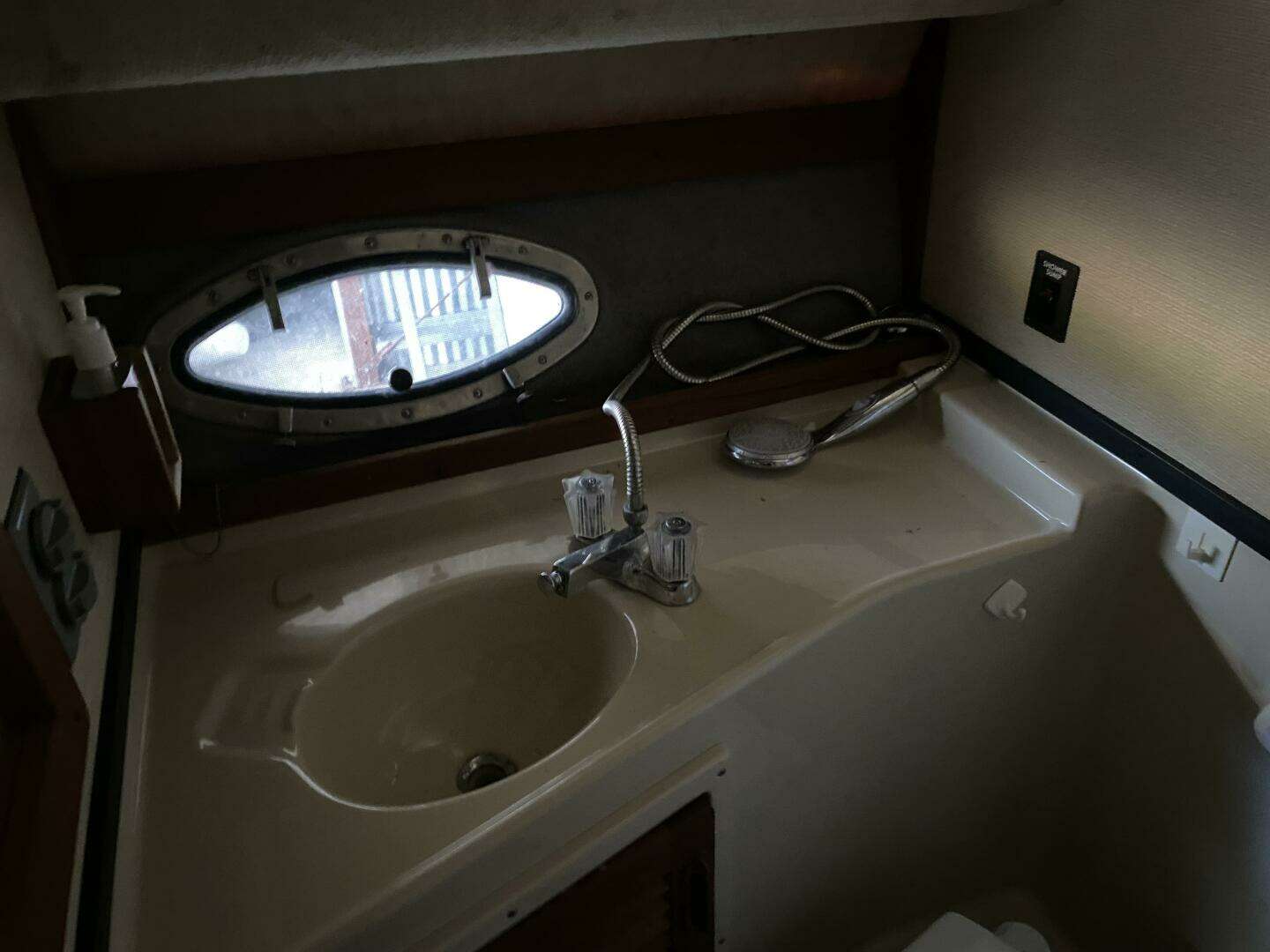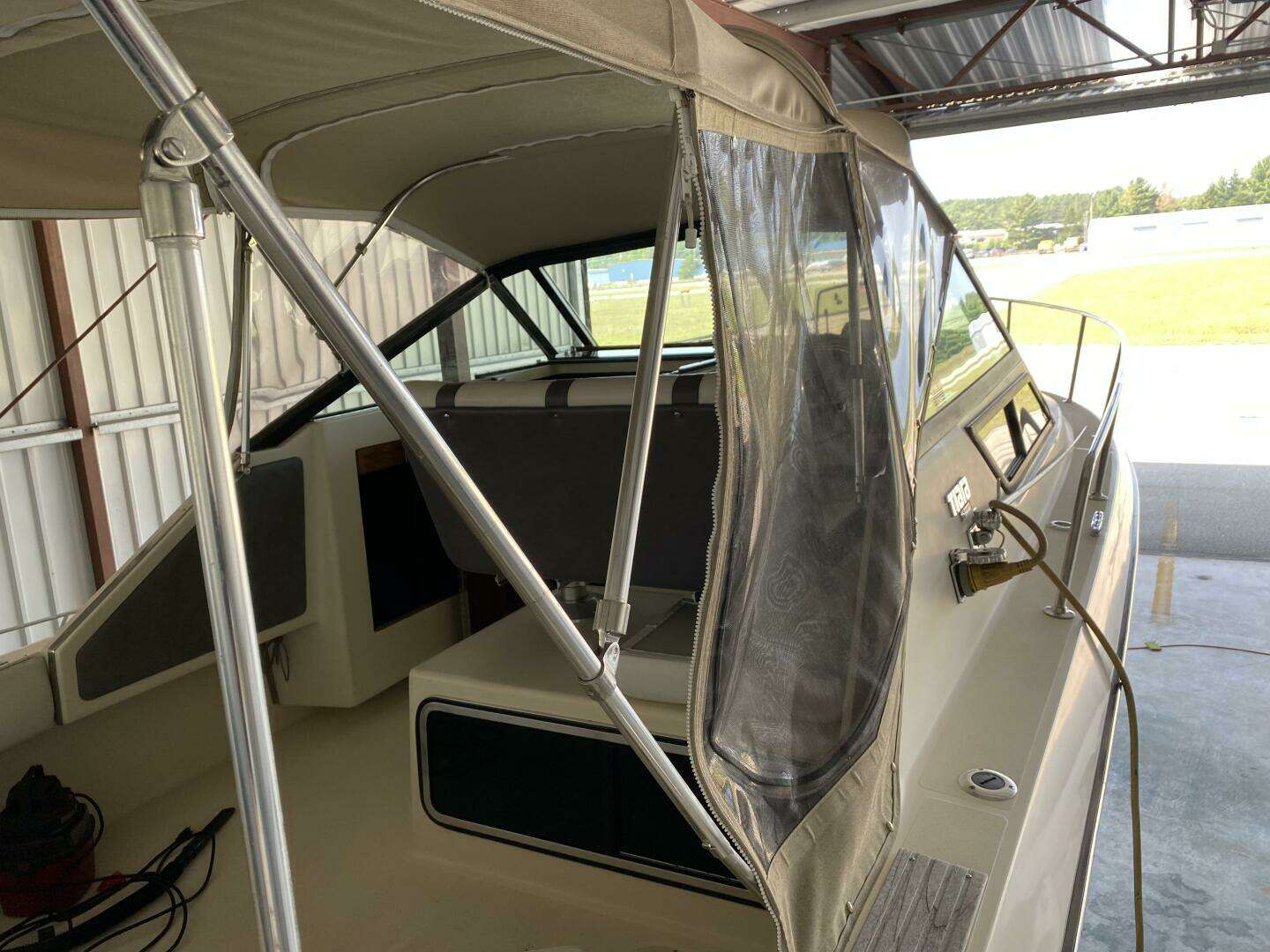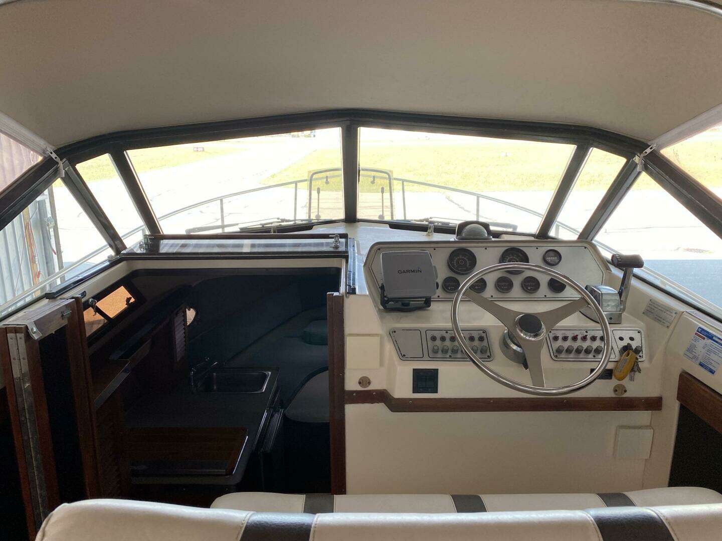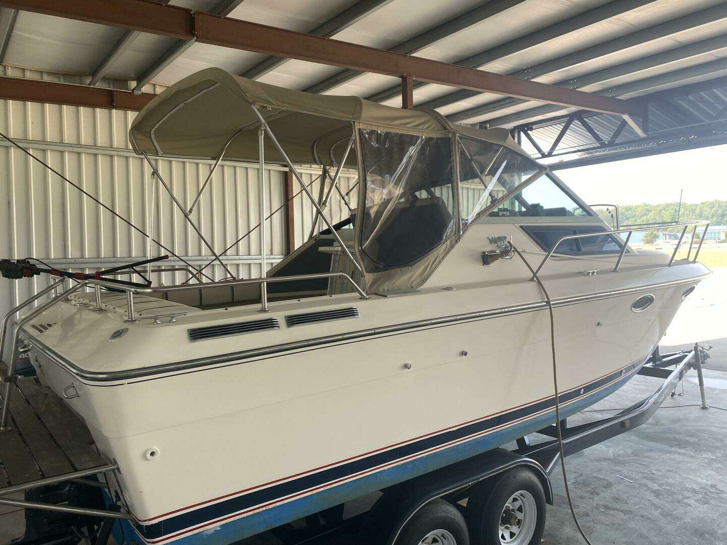 This freshwater Tiara 2600 Continental is powered with a 260HP MerCruiser. The large cockpit has a removable aft bench seat for entertaining or fishing. Accommodations include a convertible V-berth and a mid-cabin double. Galley is equipped with a refrigerator, 2 burner alcohol/electric stove and st