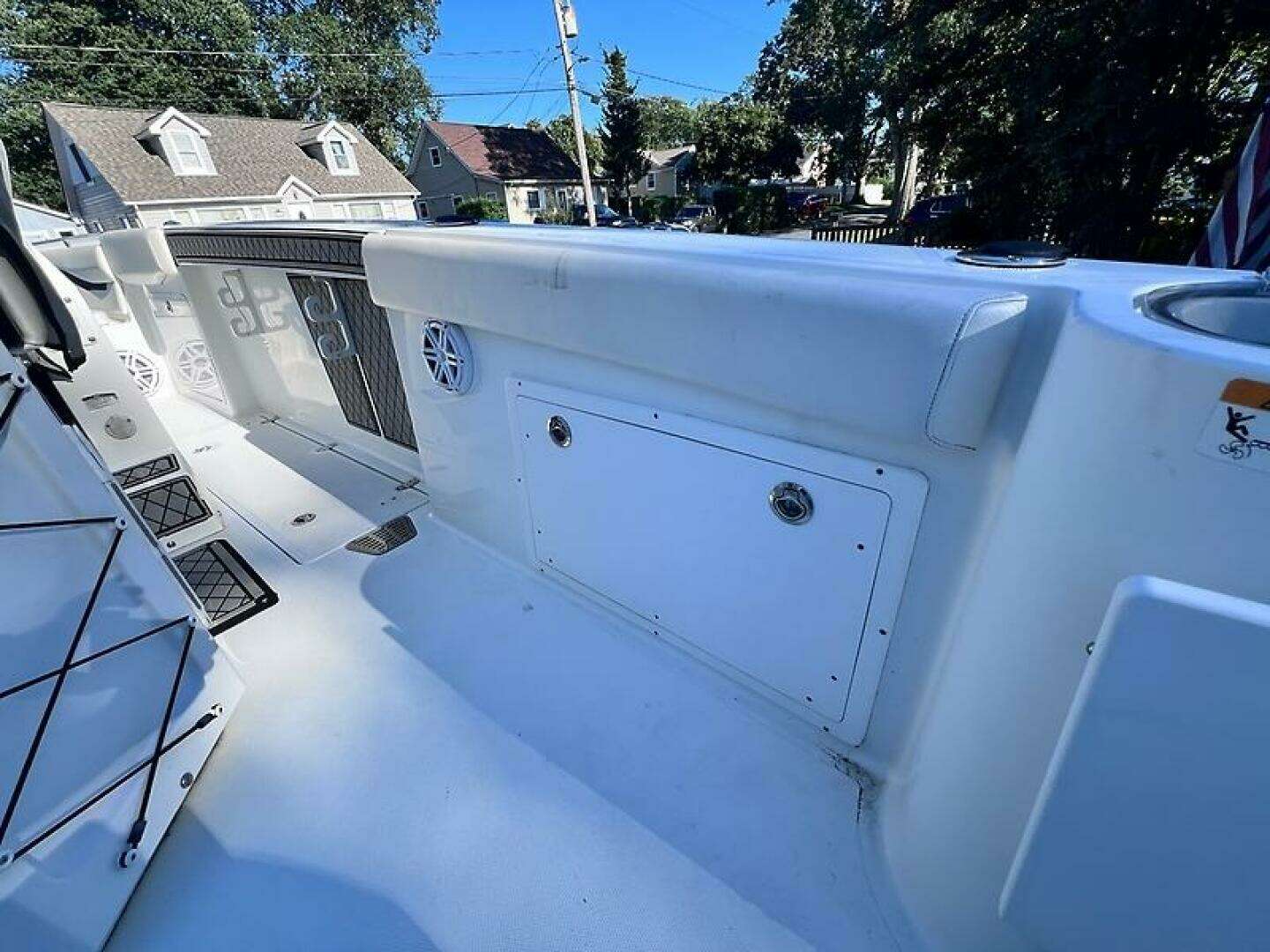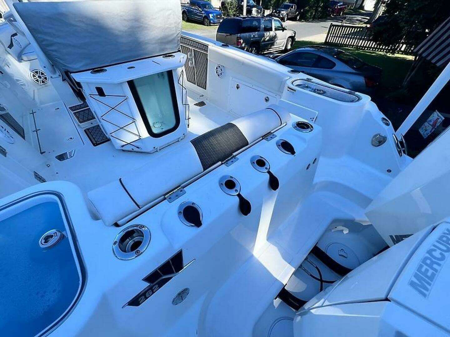 "Behind the 26’, 262 Fisherman navigation and angling come easy and stress-free. Cast off and enjoy all day fishing from any point on the boat through extensive fishing platforms. Reserve the enclosed head for your largest equipment or utilize the onboard porta-potty to avoid any inconveniences on the water. Alongside the deluxe T-top overhead that delivers a shady deck and additional holders for your sticks; deep, live wells, fish boxes, rod holders and tackle storage come standard so running out of room on the boat will never be a concern. Aft the helm, the glassed bait station will be your go-to spot for rigging and prepping baits before you fold the transom bench for more casting freedom off the stern. With so many colors, additional features and packages to choose from, such as Scarab Offshore and Bow Seating, cruising with your loved ones and landing fish with your tournament buddies have never been more enjoyable."