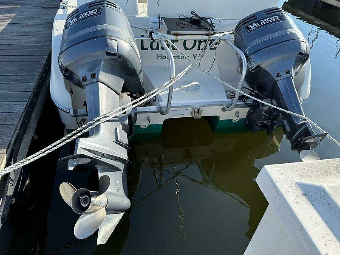- Twin 200hp Yamaha outboards cruise at 30 kts and reach a top speed of 40 kts