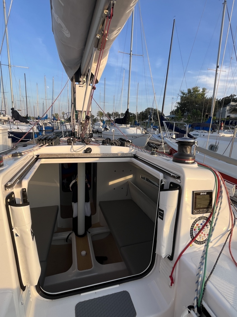 Dual Cockpit Control backstay (racing improvement over stock which comes with single control on starboard side) only)