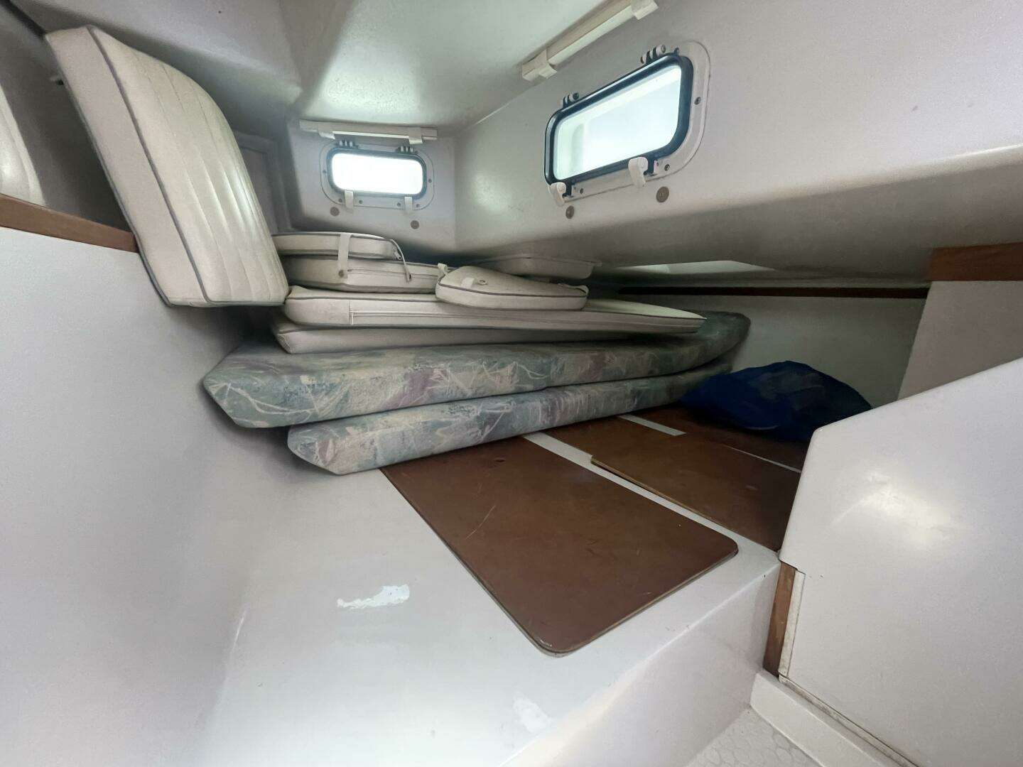 The interior includes a private double berth aft cabin, a forward double berth, full galley and a well-appointed, enclosed, head, all of which provides comfort and convenience for extended trips. The thoughtful design ensures a pleasant experience for all aboard.