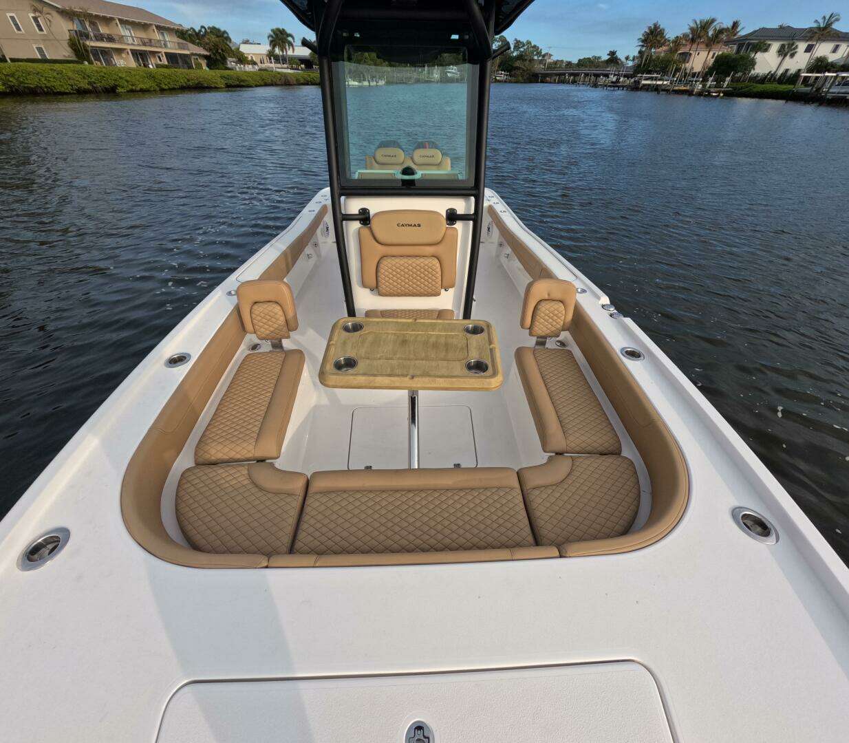 The 281 HB is a perfect combination of pro-level fishability, distinctive contemporary styling, and family-focused comfort. Our hybrid (HB) boats are the ideal blend between a bay boat and an offshore center console. Perfect for the angler that wants to make a long run offshore and fish the shallows on the way back in, the 281 HB provides a versatile platform to target almost any species. Performance starts with a Michael Peters double Stepped-Vee Ventilated Tunnel hull. This patented hull delivers speed, fuel efficiency, and a precise and dry ride. Featuring the same fishing amenities as the 281 HB (huge nonskid casting deck, massive built-in storage compartments for tackle and gear, 35 gallon livewells, backlit console display), the 281 HB offers the safety and reliability of engines and a standard 120 gallon fuel tank, with an optional 35 gallon auxiliary fuel tank for those long days on the water. Family and friends who hop aboard for a day of fun will love the 281 HB U-shaped bow seating, center-line flip-up stern seating, 9’-4” beam, high freeboard and deep gunnels for added safety and security, premium stereo system options, and a butter-soft ride. See for yourself how the Caymas 281 HB enjoys the best marine fit and finish utilizing the highest quality marine hardware and craftsmanship. The Caymas 281 HB can be rigged with Yamaha, Mercury, or Suzuki outboards up to 600 horsepower.