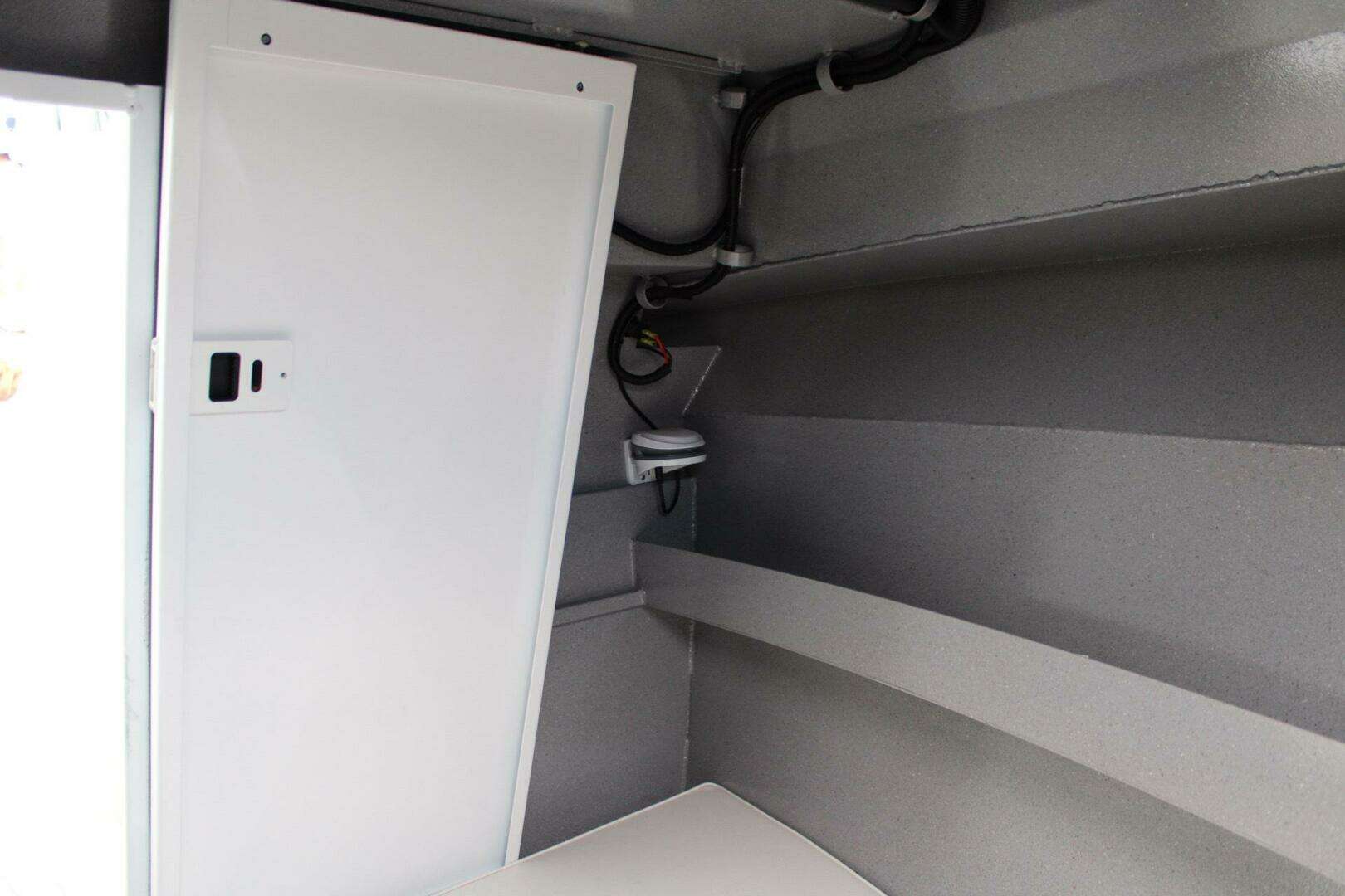 - Driver bench seat including rear prep station with storage and lockable cupboard
