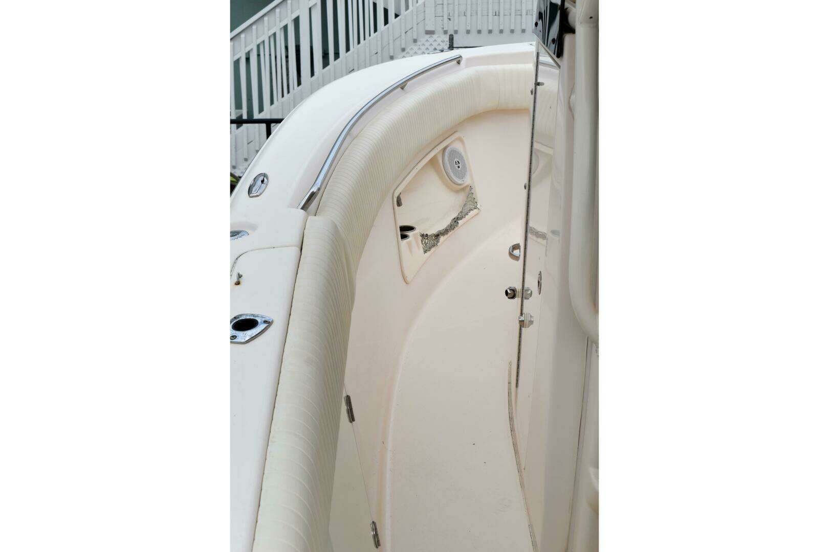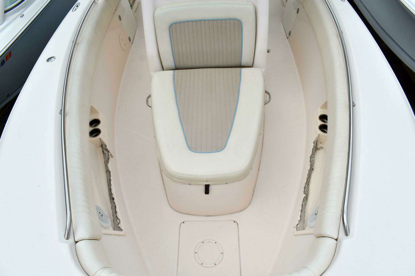 - Upholstery completely updated recently, is in excellent condition as the boat has been stored inside since 2012 Cushioned seating forward & aft with insulated coolers and large storage beneath.