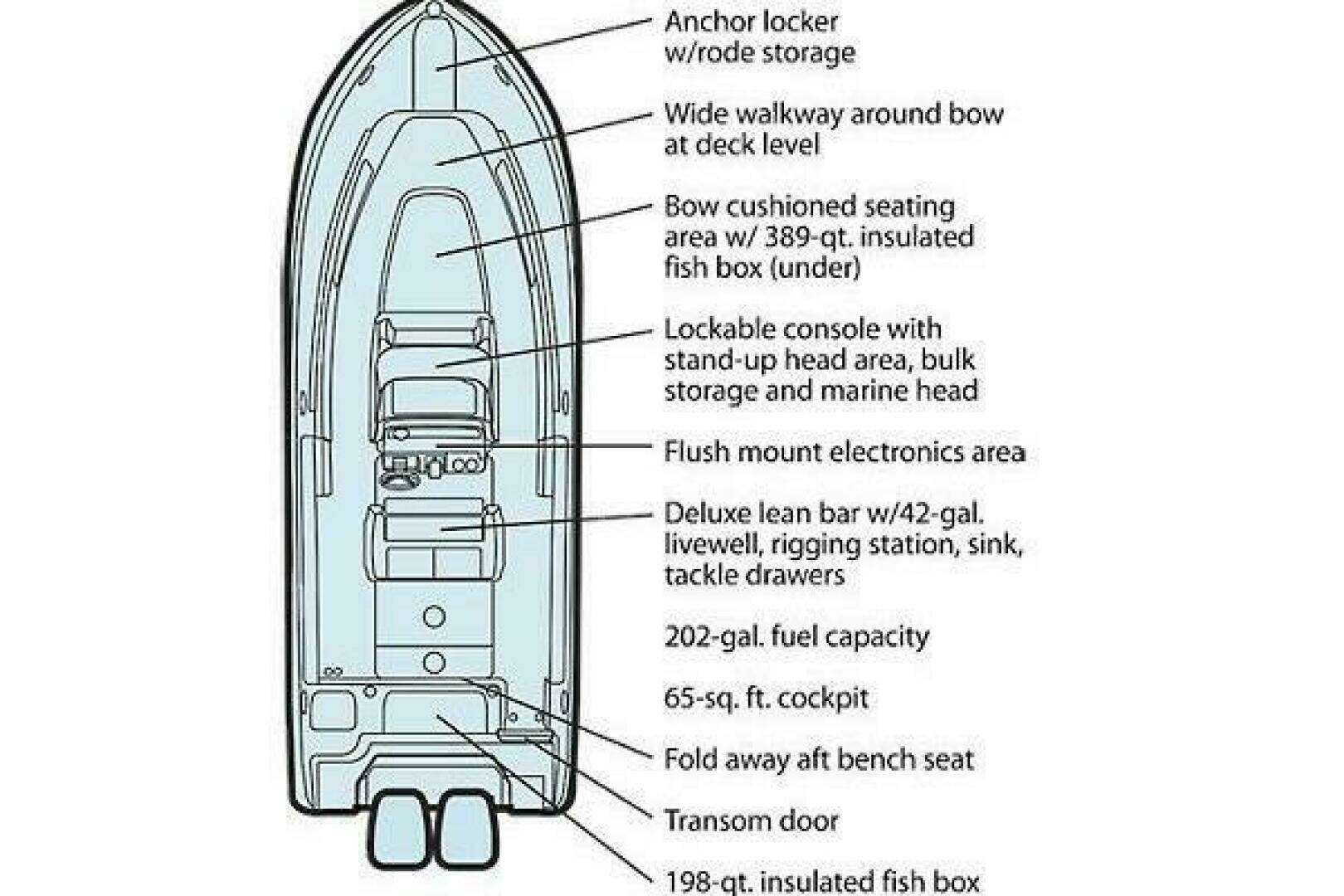 - Fish box - 198 qt. (218 l) aft insulated fish box w/ob drain