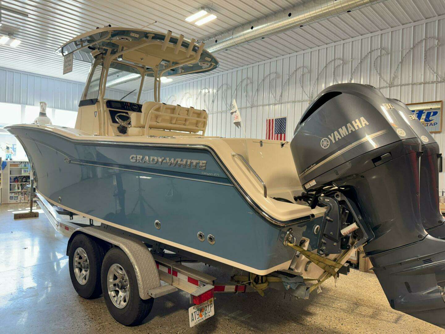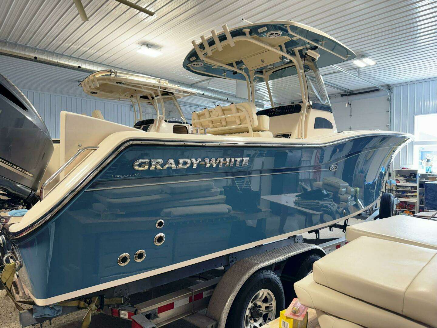 You will be very hard pressed to find a cleaner version 2019 Grady-White Canyon 271 than this one! And what a Beautiful Beast she is! Featuring the Seaport Blue Hull color and Twin Yamaha F-300's (digital controls) with only 519 hours this is the Canyon 271 to own! This boat has many recent updates such as a Garmin 1243 MFD, Garmin AutoPilot, new Fusion stereo system with new Speakers/Sub and Amps, an added group 31 battery and more! This boat has a Windlass, Convenience package (shore power/battery charger) Underwater Lights, Electric head, Trim tabs, Deluxe lean bar, Trailer and more! This boat is clean throughout with factory clean and shiny gelcoat on the bottom (no bottom paint). We have excellent service records on this boat and typical of Grady-White, the attention to detail and legendary ride is second to none! Trailer is included! Call or email us for all the details!