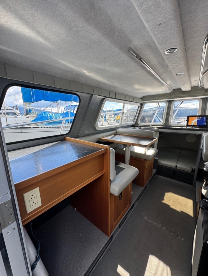 Finished in black and grey, this is a well-kept boat with a strong setup for the coast. KingFishers have a great following for good reason. They are versatile, they hold their value well, and they suit buyers who want one boat that can fish hard, cruise comfortably, and handle our west coast conditions.