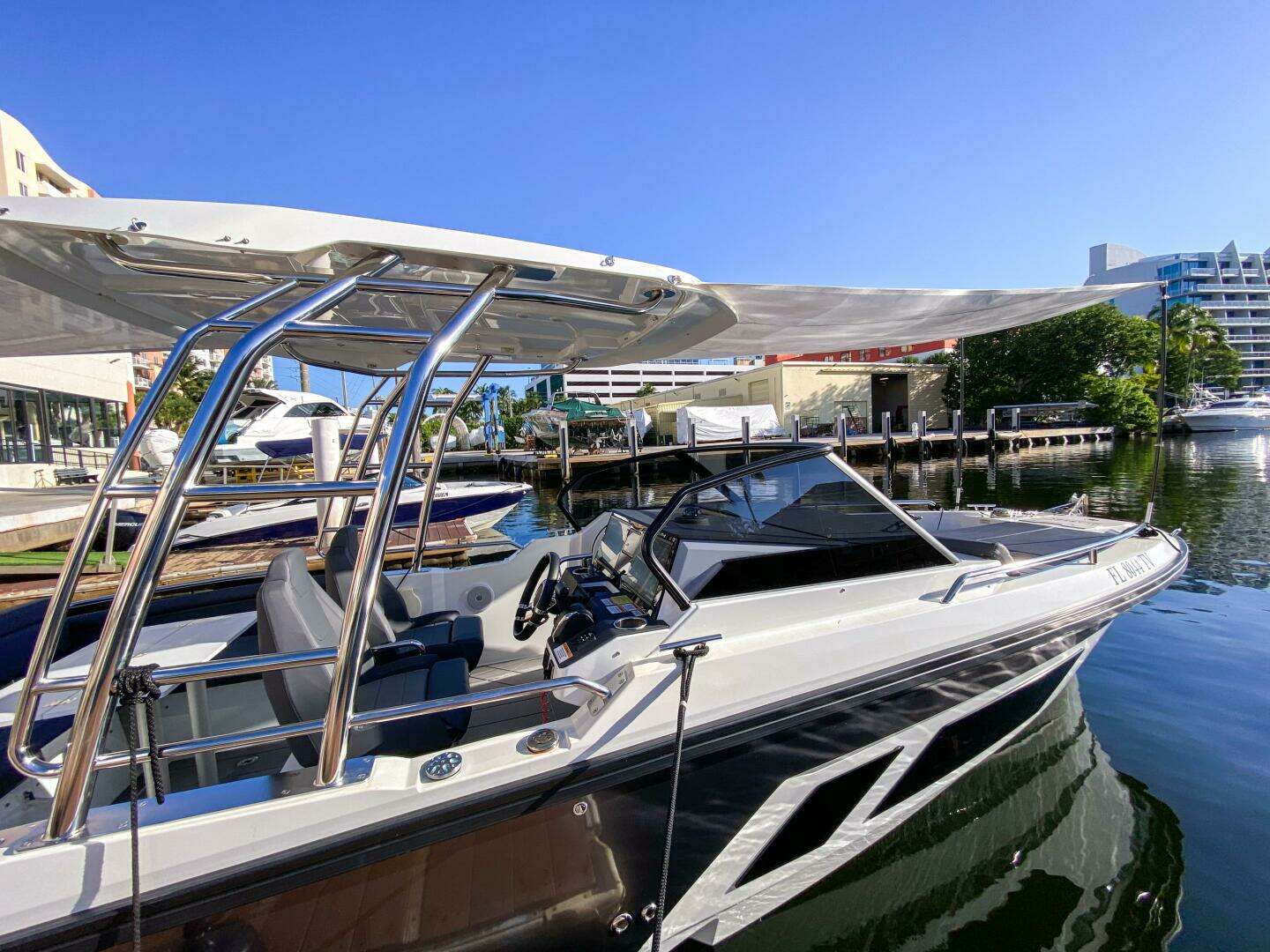 Only 80 hours on the Yamaha F300NSB with top speed over 50 MPG. Impeccably maintained and rack stored at Aventura indoor marina since day one - no bottom paint.