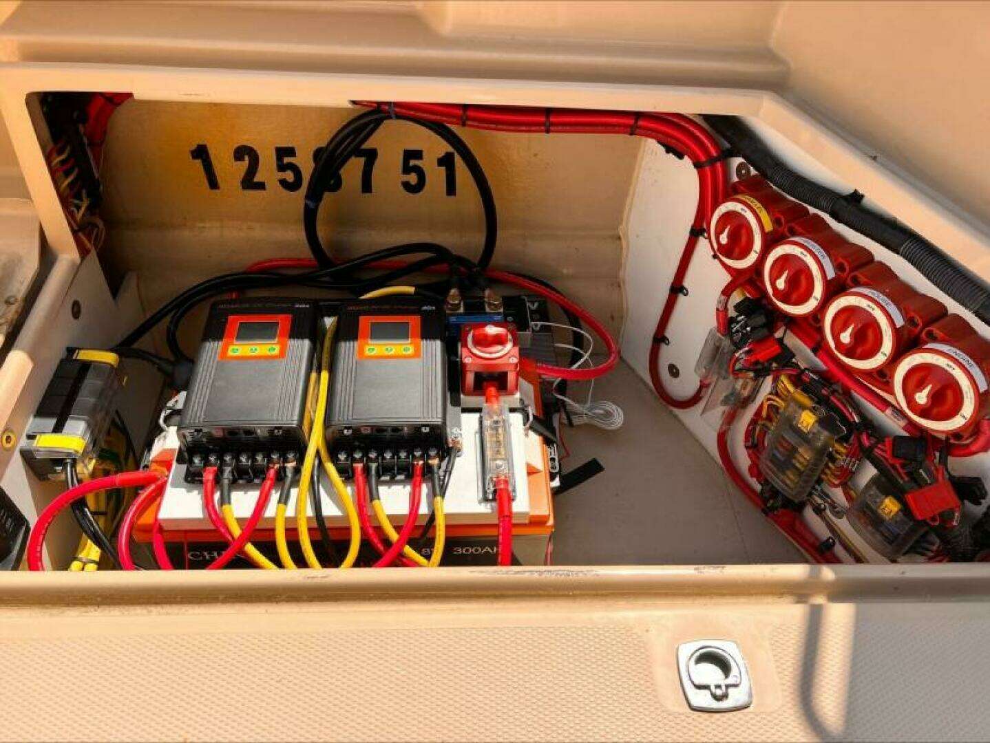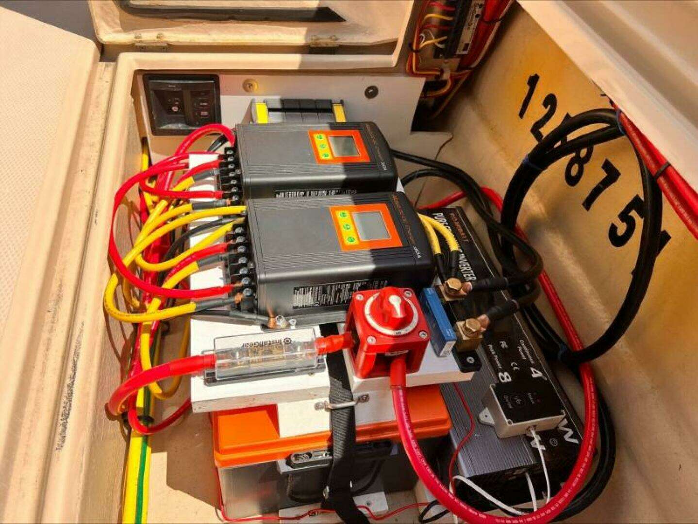 - Lithium battery bank set up: 300AH battery, 4000 watt inverter, two DC to DC chargers, 50 amp and 30 amp