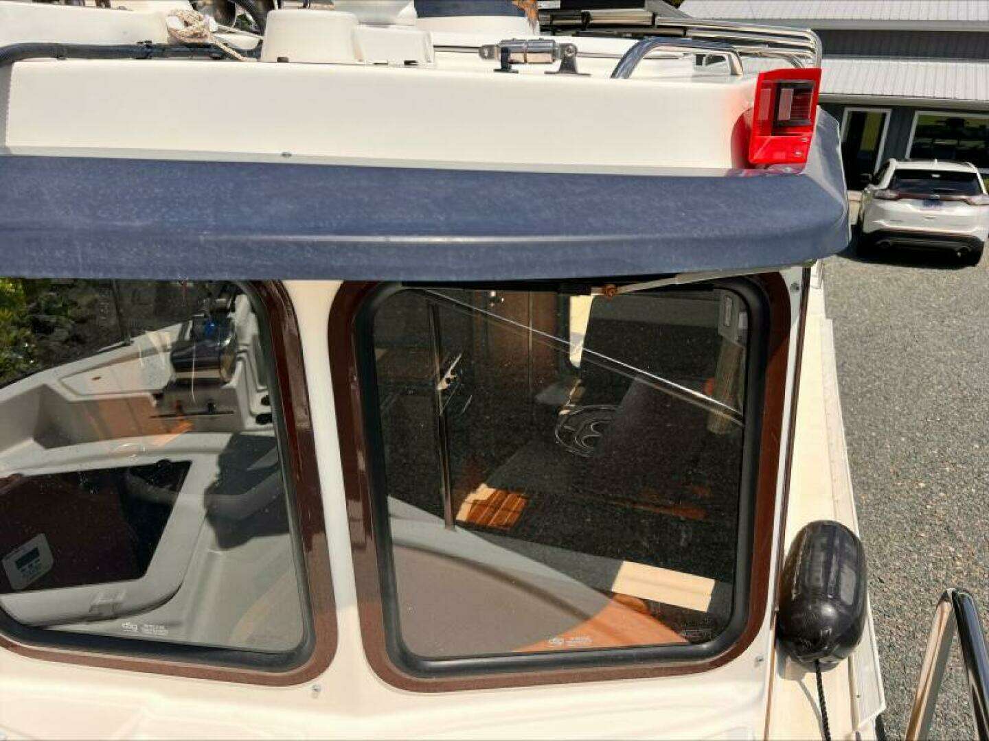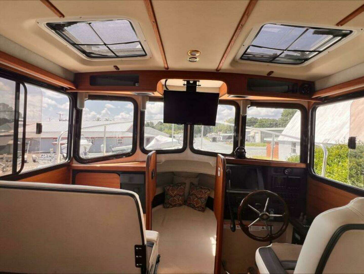 2015 Ranger Tugs R-27 “Snug Tug” is a shed-kept, well-maintained pocket yacht in Deltaville, VA. Featuring a midnight blue hull, fresh bottom paint, service records, and a trailer, she’s turnkey and ready to cruise in comfort and style.