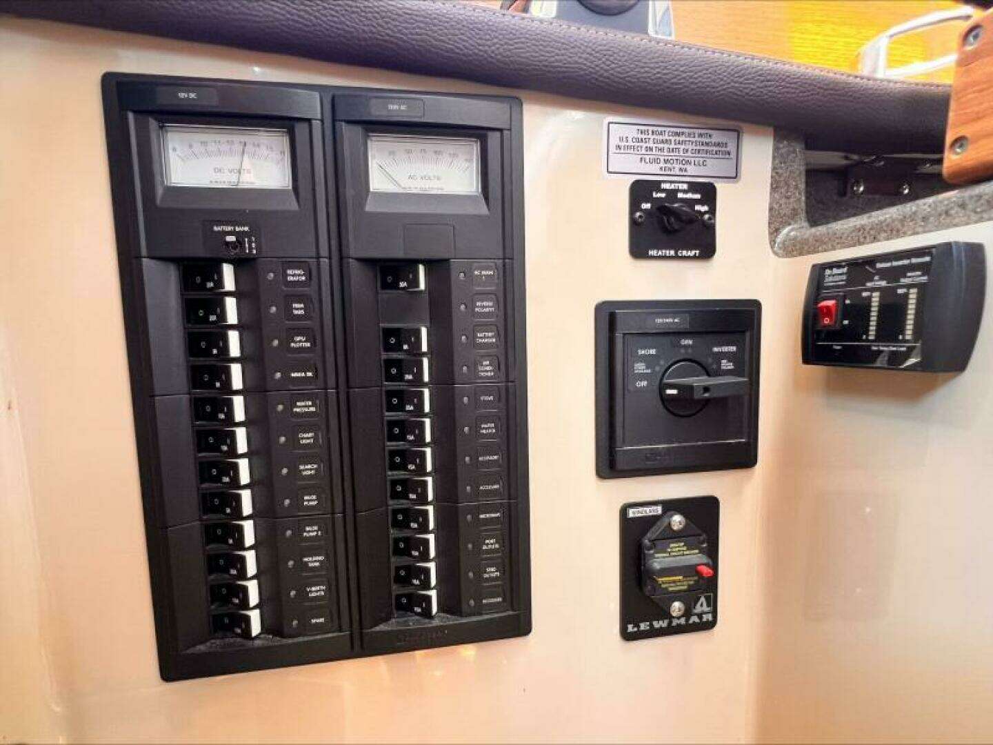 - Electrical panels AC/DC at helm with AC and DC volt meters