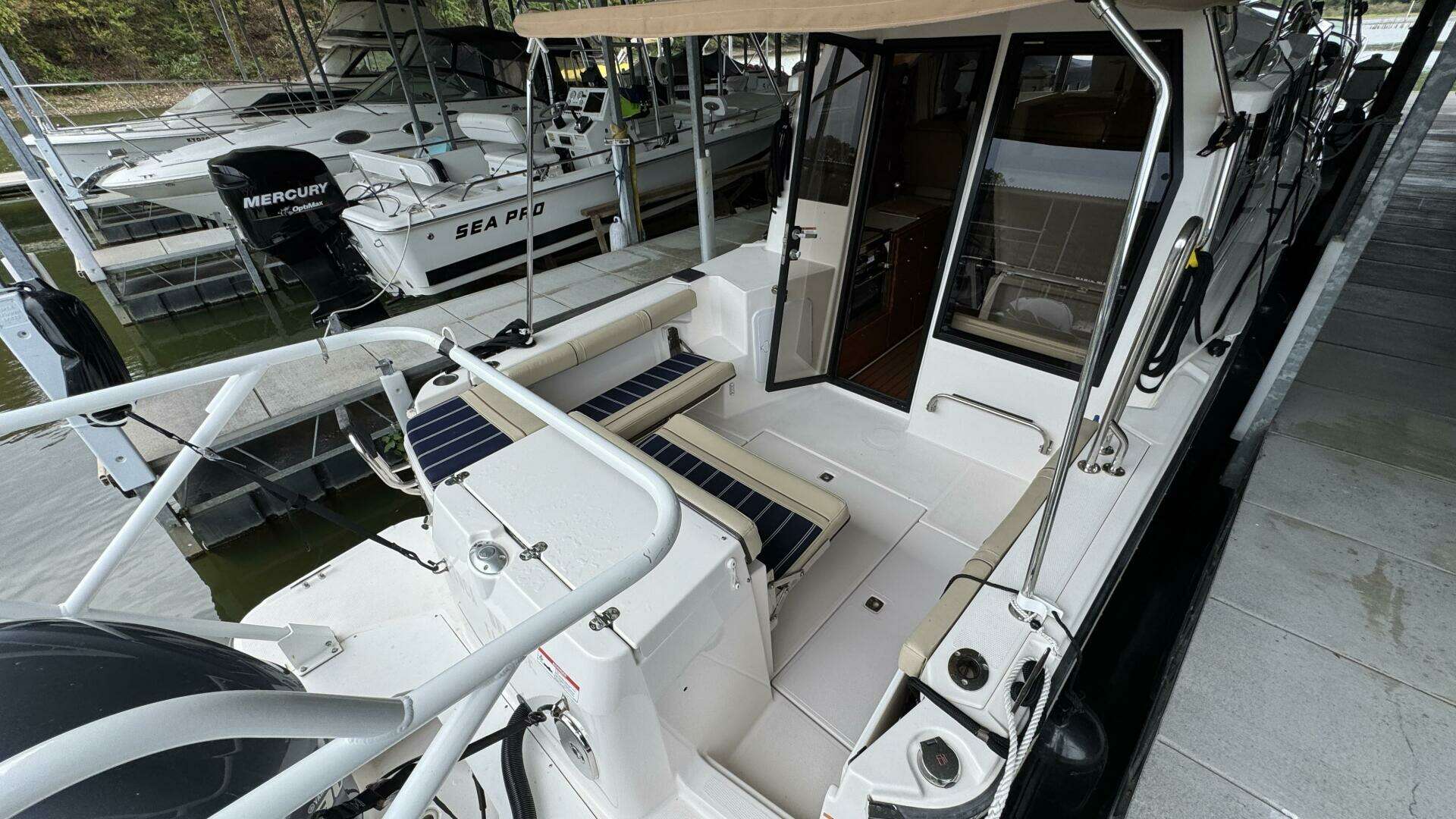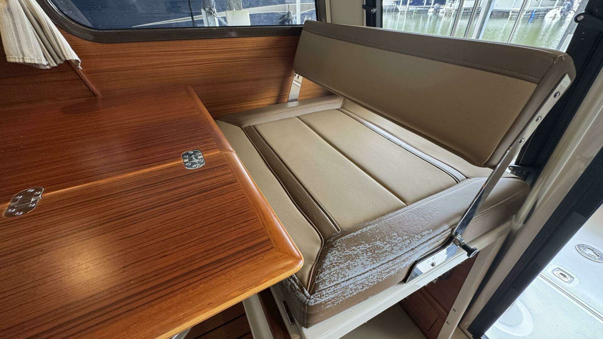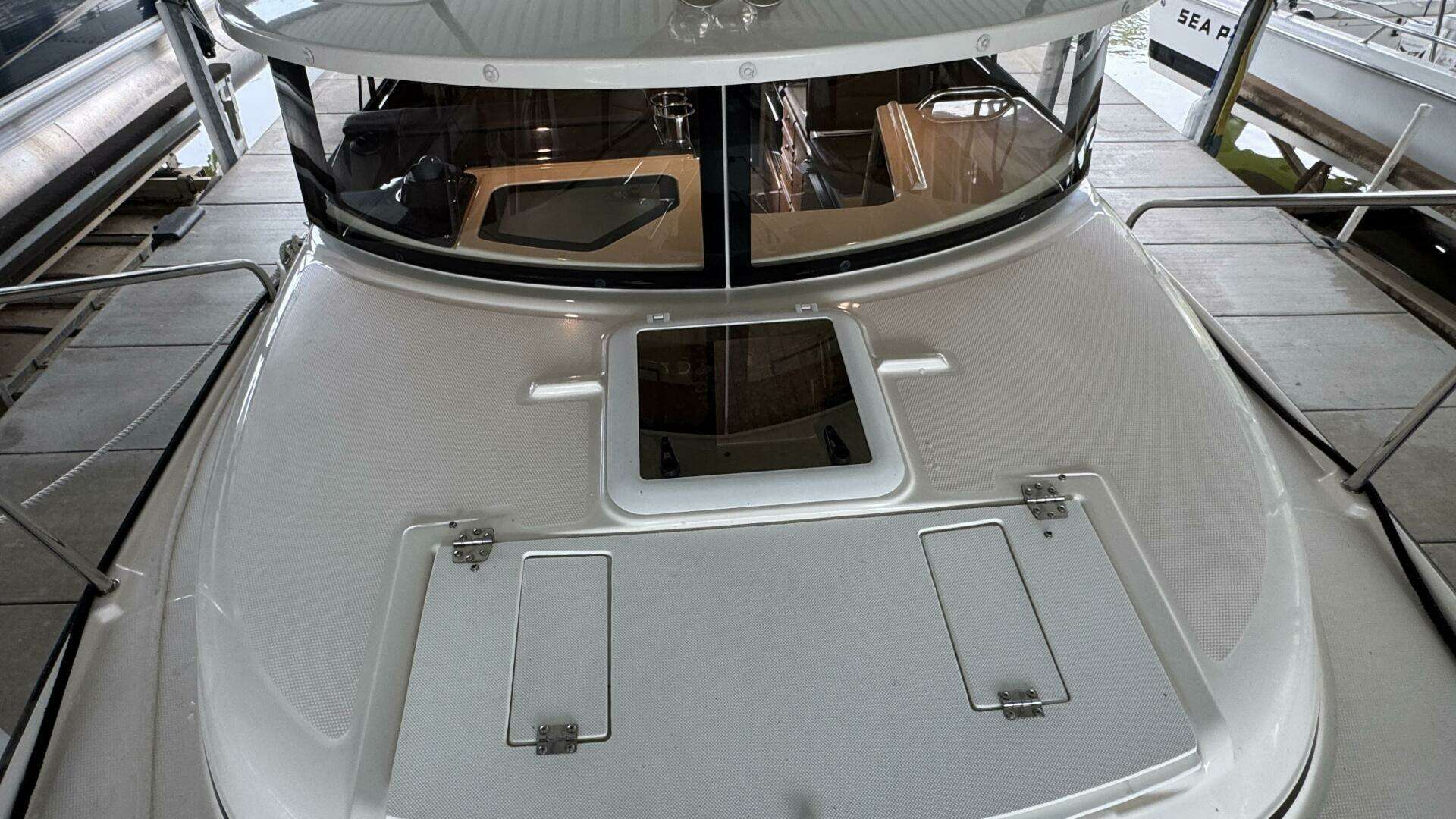 - Inside, the well-appointed cabin includes teak & holly sole, panoramic windows, and convertible seating.
