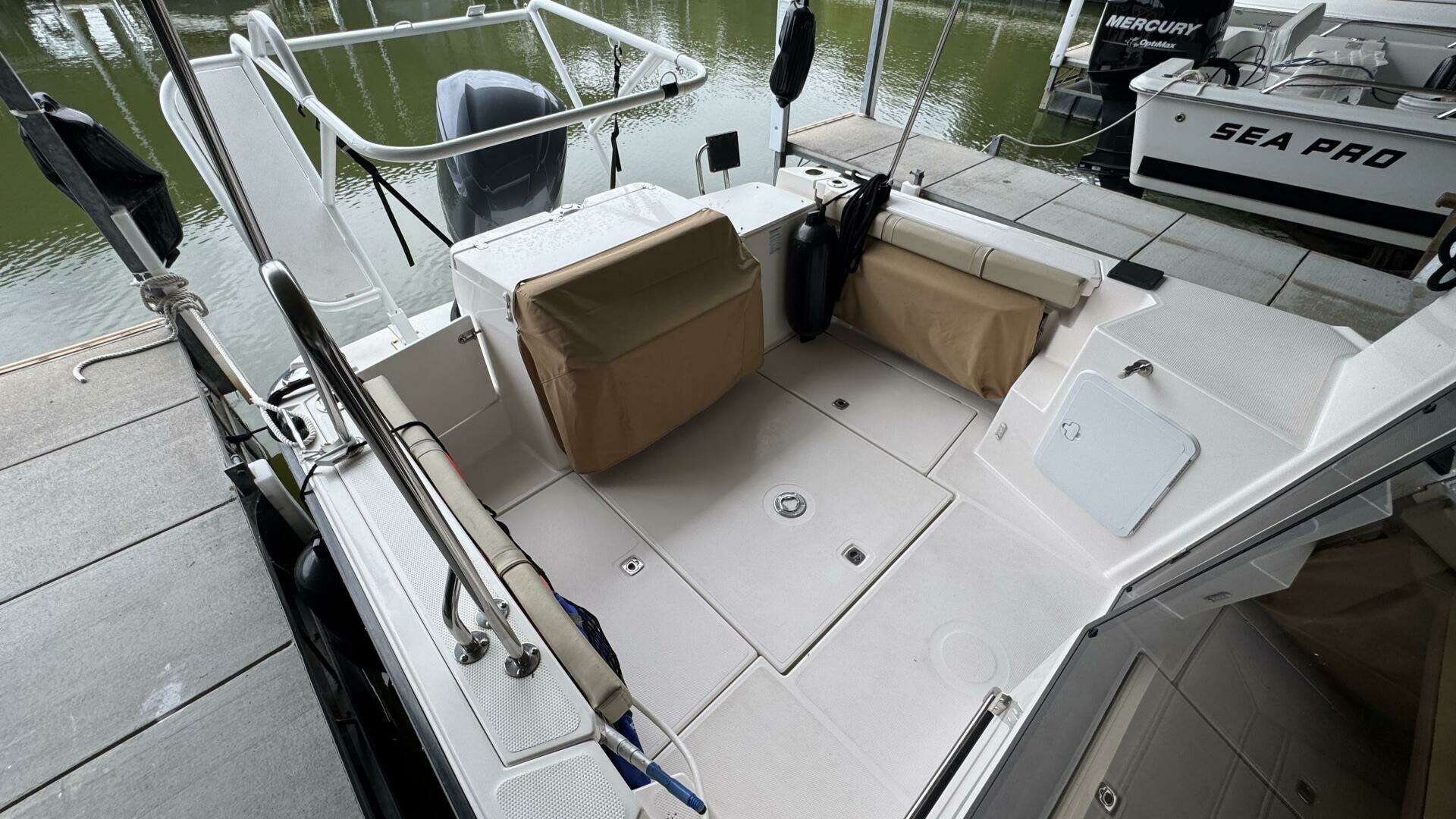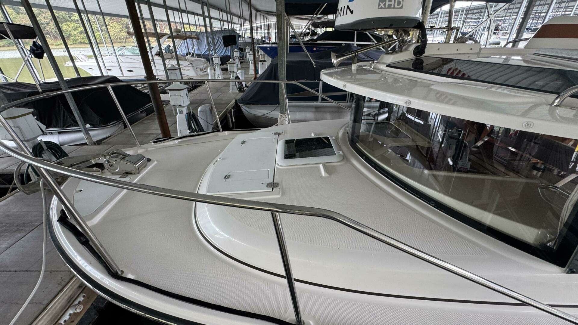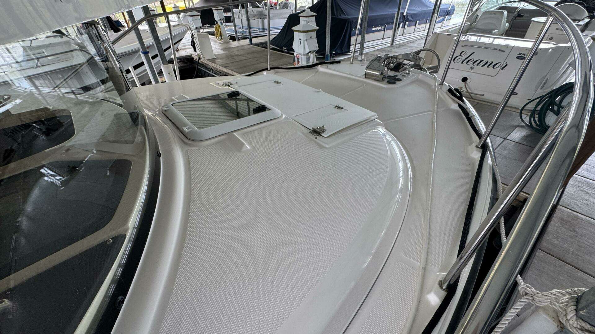 - Molded steps lead to narrow side decks for safe bow access.