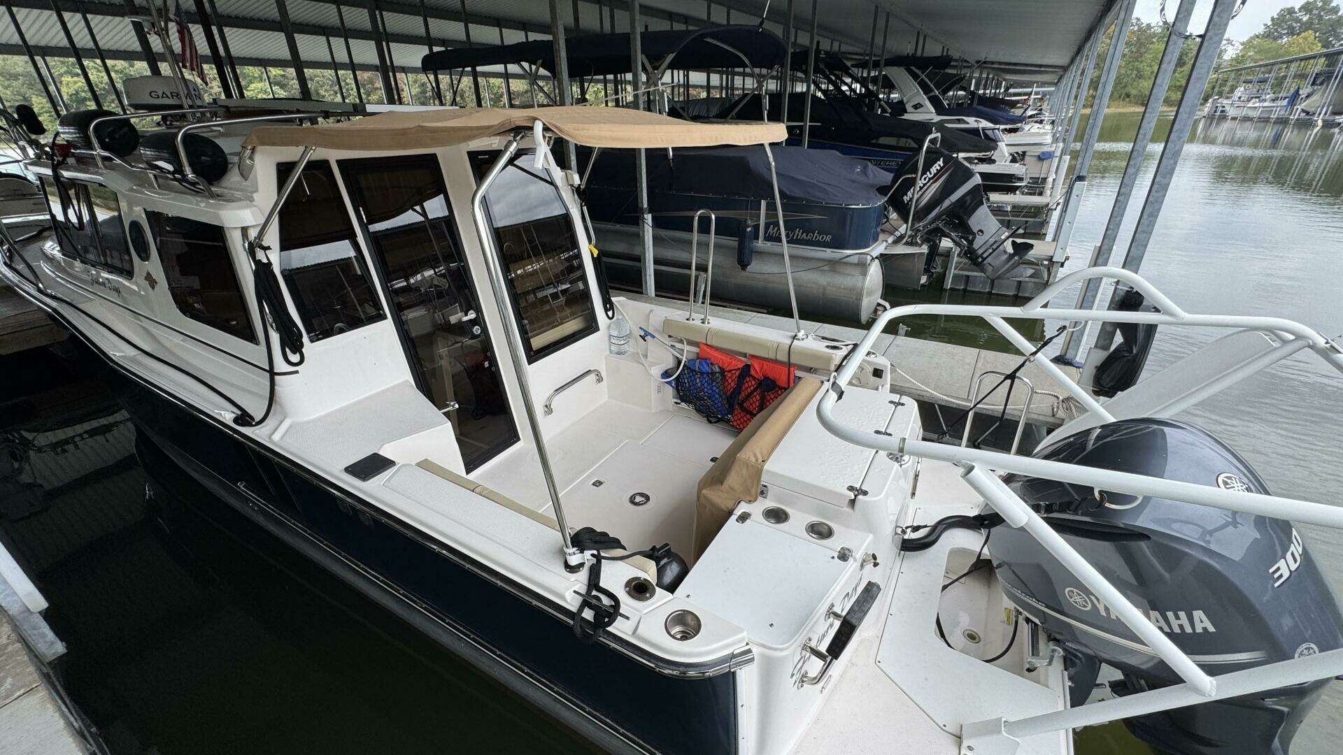 Turnkey 2020 Ranger Tug R-27 Luxury Edition with trailer, Yamaha 300HP (278 hrs), Westerbeke generator (47 hrs), dinghy lift with tender, new cockpit enclosure, full electronics, A/C, inverter, solar panels, and more. Ready for the Great Loop or weekend cruising.
