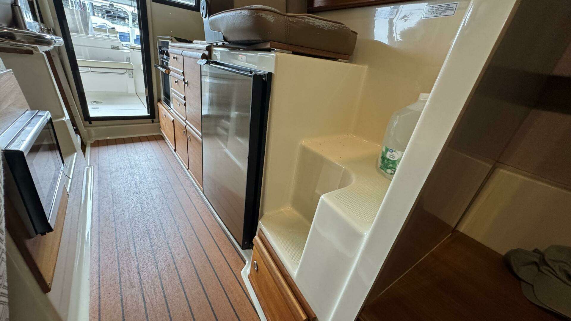 - Standup head/shower aft of galley
