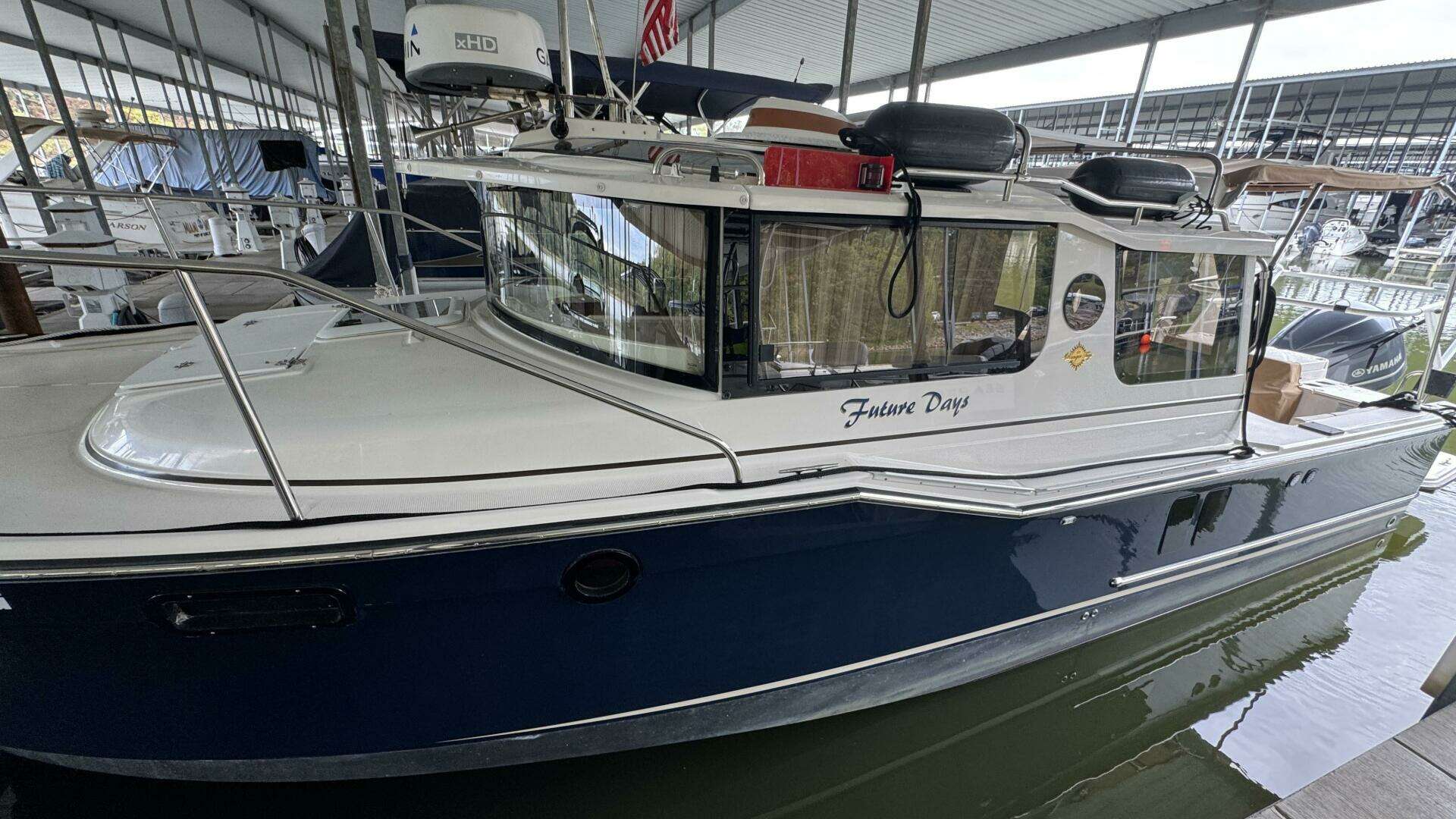 The Ranger Tug R27 Luxury Edition is a true pocket yacht — blending rugged tug styling with the comfort, efficiency, and amenities of a much larger trawler. With her trailerable 8’6” beam, shallow draft, and Yamaha 300HP outboard, Future Days offers versatility for both long-distance adventures and easy weekend getaways.