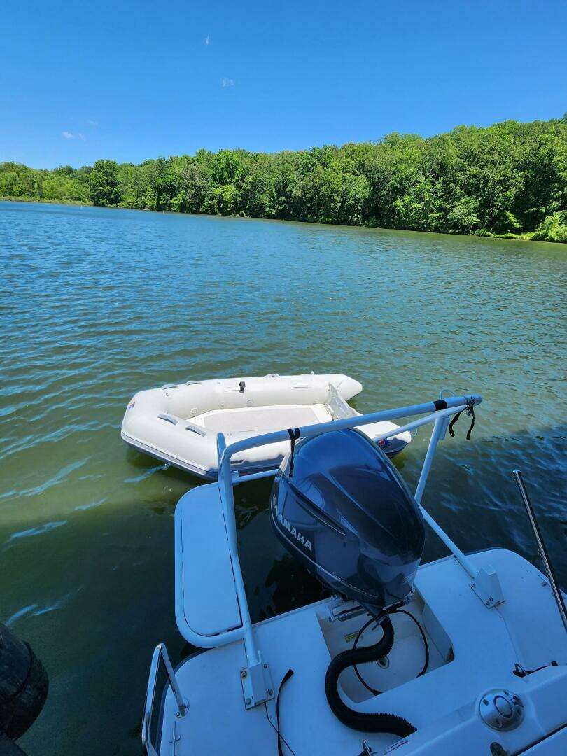 Factory dinghy lift with Inmar inflatable & Suzuki outboard |