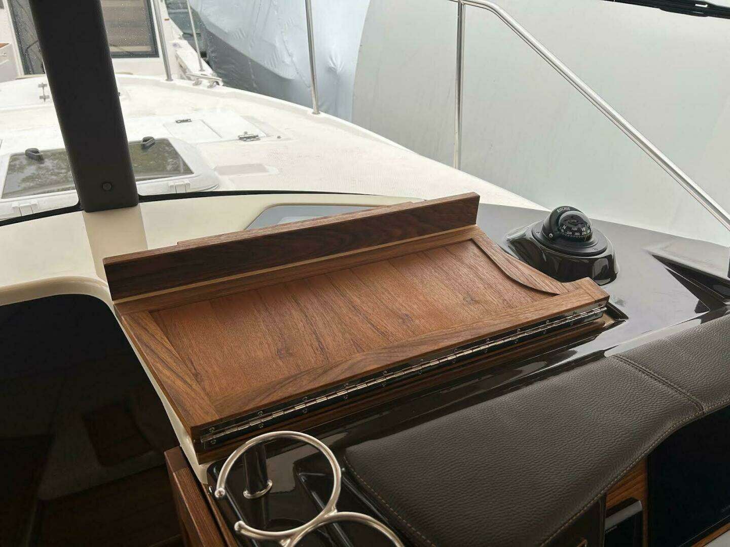 • Upper forward berth hatch folds open and neatly slides away in front of Helm