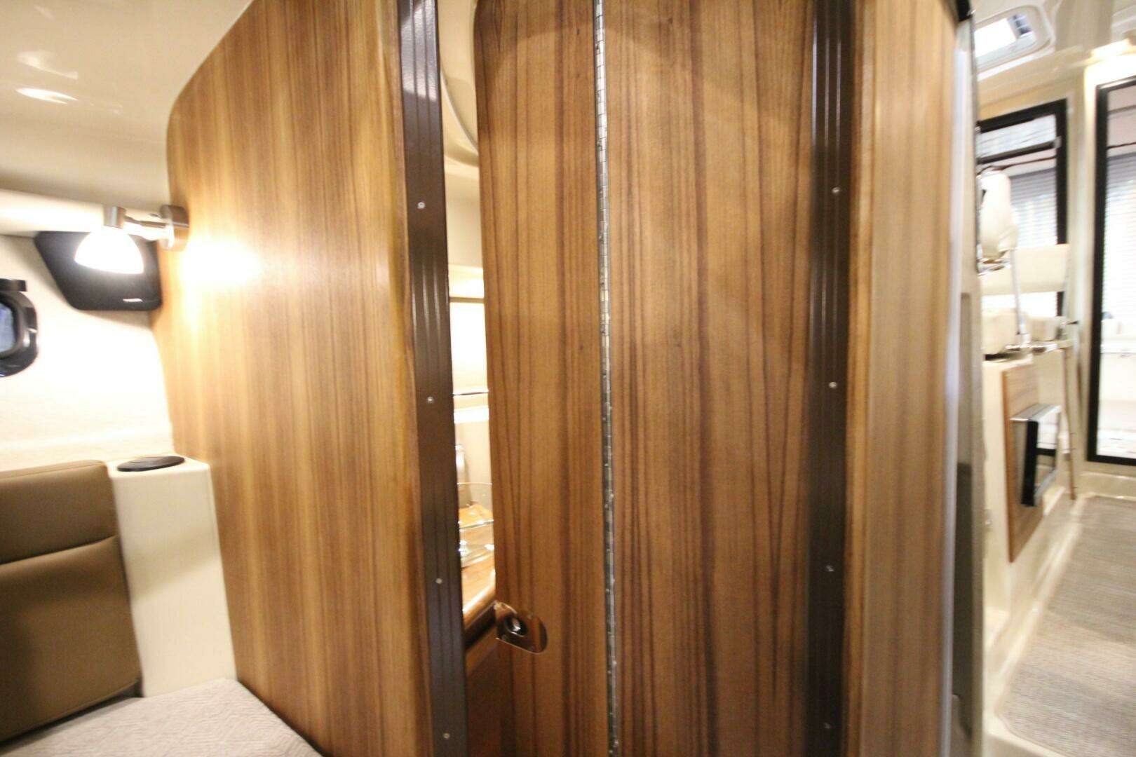 The curved front windshield and overhead glass atrium provide beautiful 360 degree views and generous light throughout the salon. Open the aft glass bulkhead in tandem with any of the hatches, windows, or port lights to deliver a fresh breeze throughout the cabin. Chefs will be delighted to cook in the full galley or to simply grill on the removable electric Kenyon grill. When taking in a gorgeous sunset, you and your guests can enjoy the view from the spacious cockpit or from the new double lounge seat on the bow of the R-27.