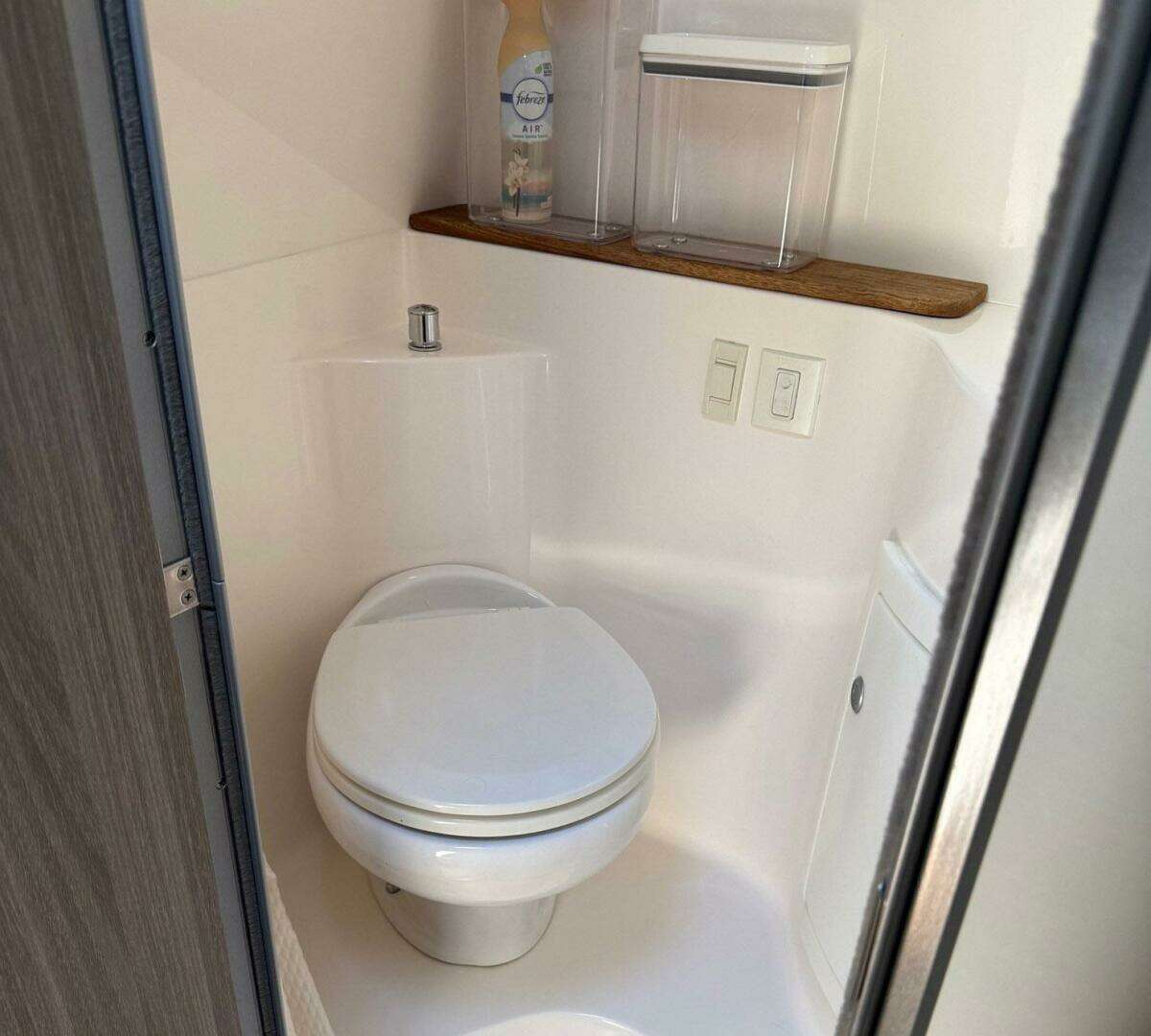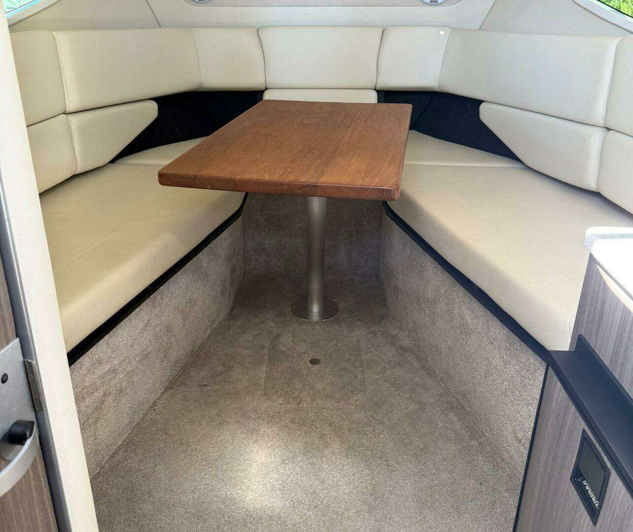Below deck the boat has a spacious cuddy for entertaining and hanging out with friends and family. In addition to the seating in the v-berth it also has an aft cabin for overnight trips.