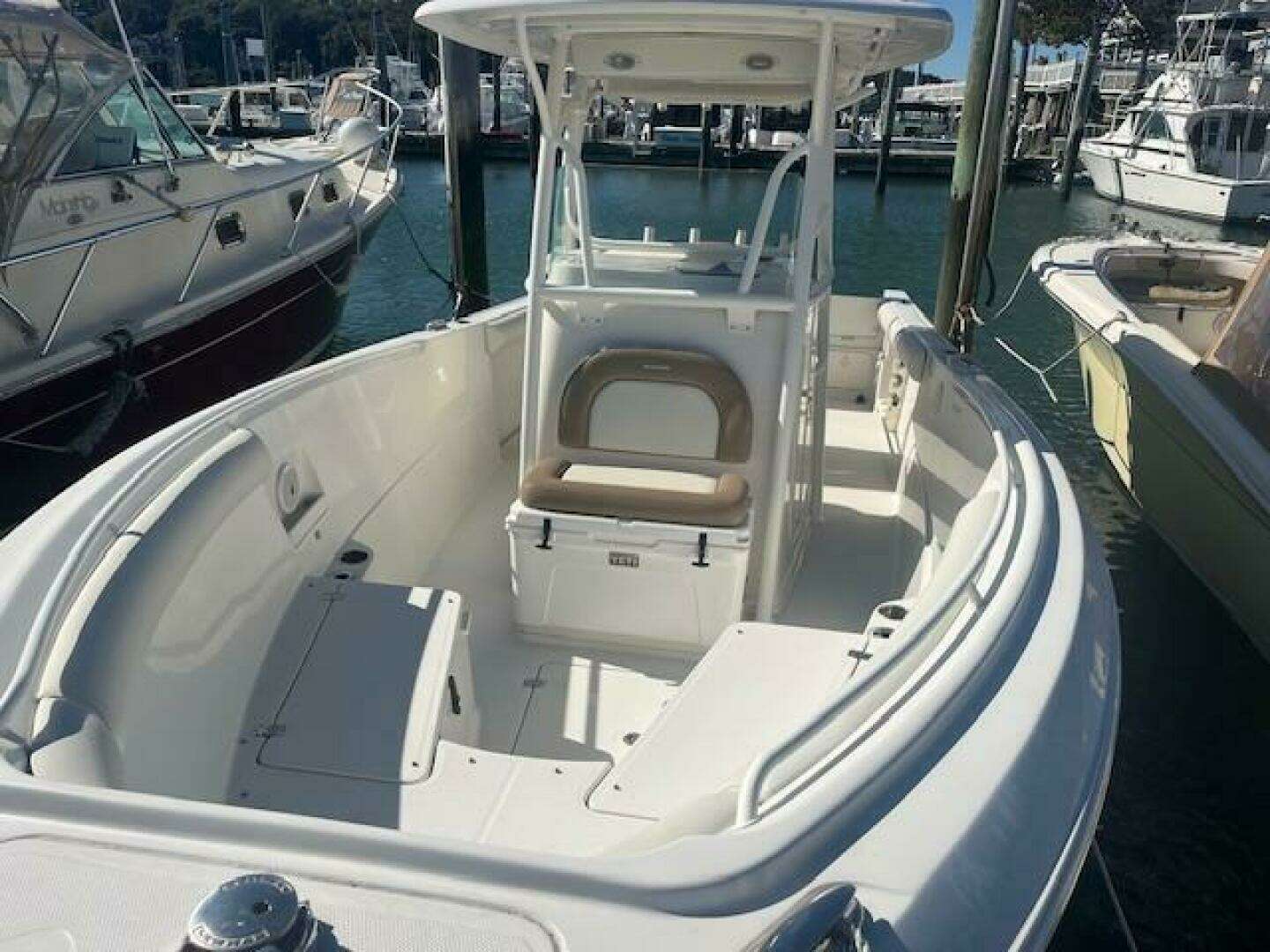 This is a very nice and extremely well cared for 27 Sailfish, Very nicely Equipped with 2 Garmin chart plotters and radar. there are cushions for the bow area including the sun pad cushion. There also the jump seats for the transom area which were rarely used, Engines were well maintained by a certified Yamaha technician., There is a roomy head compartment also. The windlass has 600 feet of custom rope and chain that does not tangle. There is also battery charging system on board when at the dock. With the light blue hull and the full hardtop she is one of the finest riding 27's out there. Known for there great build with no wood used anywhere in the boat . She is one tough boat.