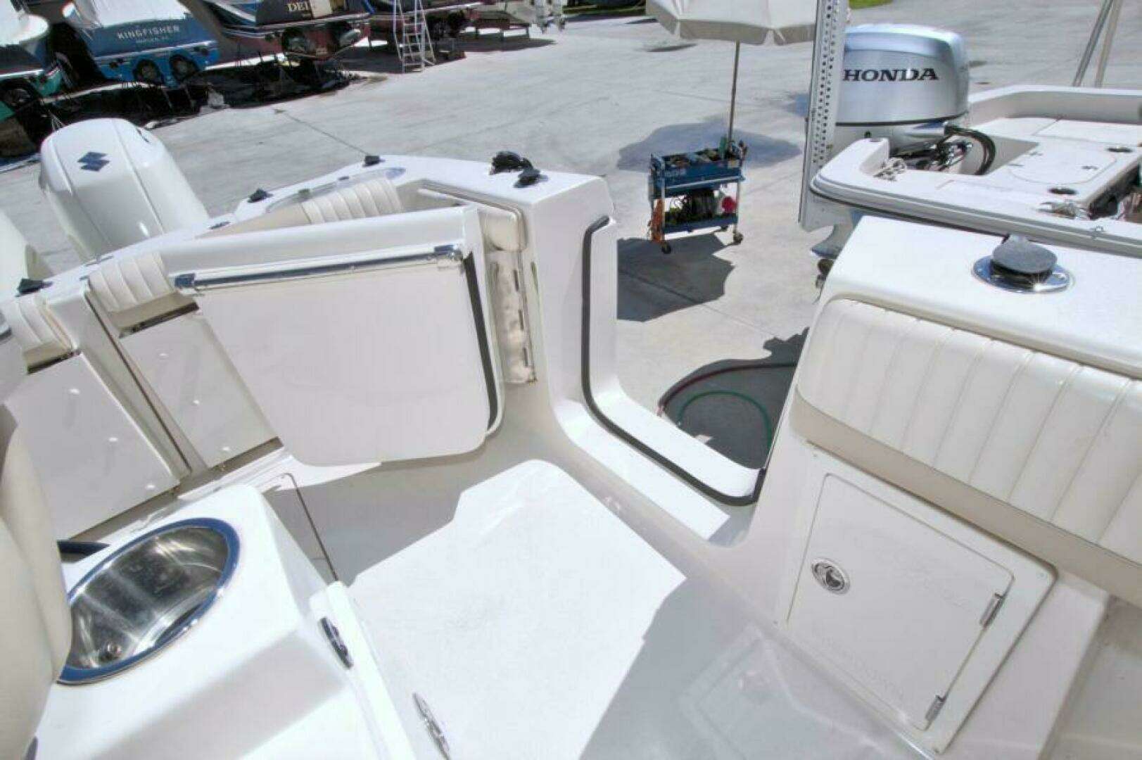 - Twin Suzuki 200 HP Engines – Reliable and fuel-efficient, perfect for both offshore fishing trips and long cruising days on the water.