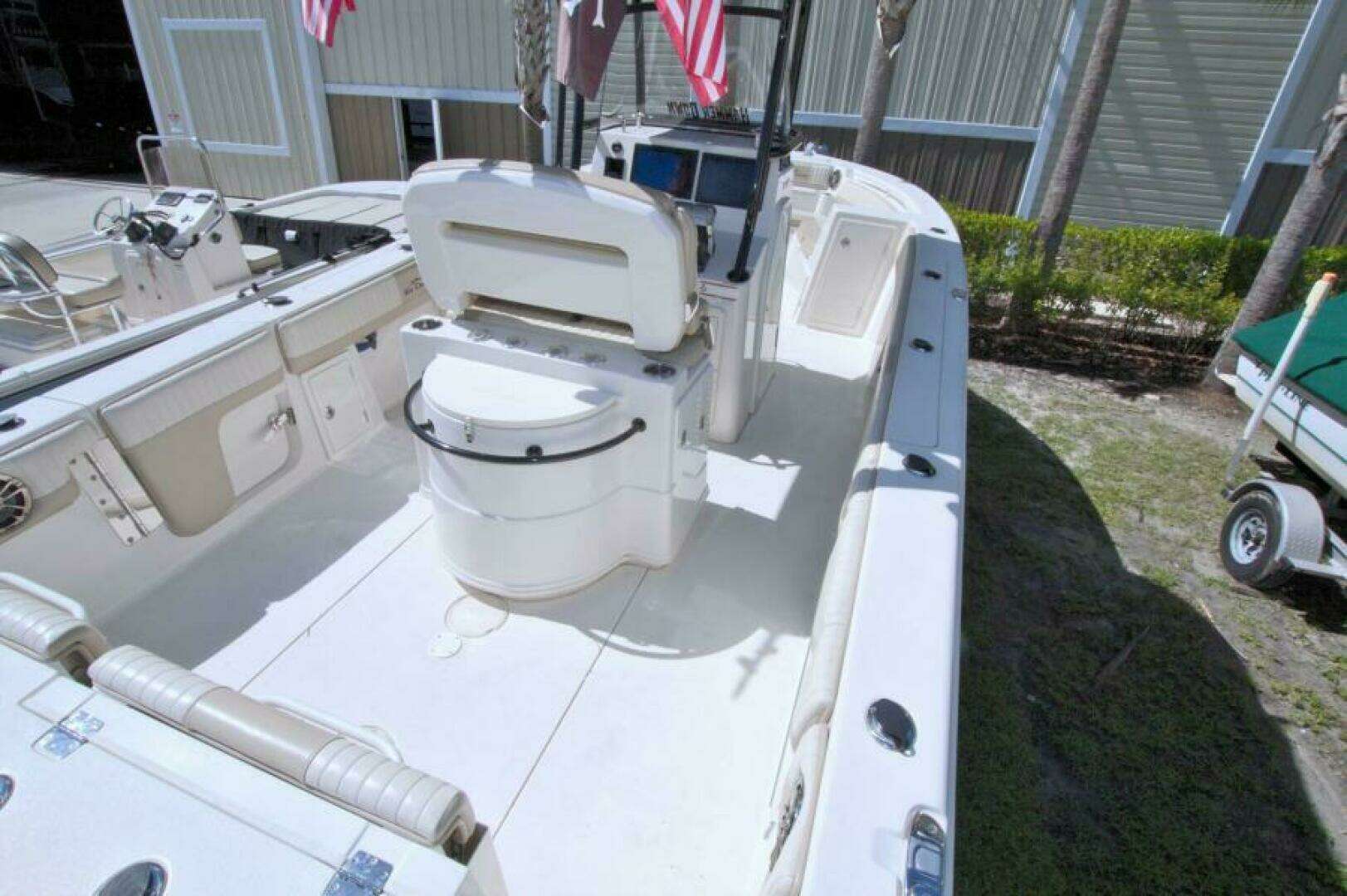- Leaning Post w/ 40 gallon bait well /Tackle trays, recirculating system, LED light