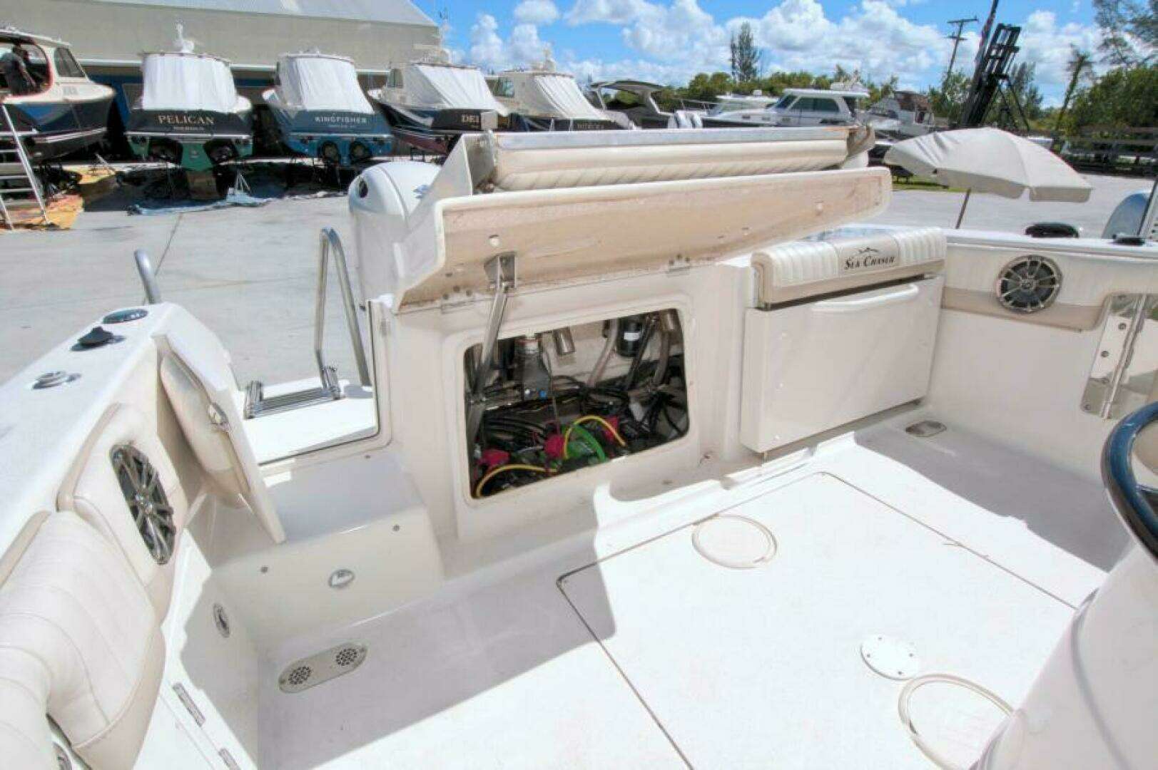 - Starboard side rear cabinet w/tackle storage, knife holders