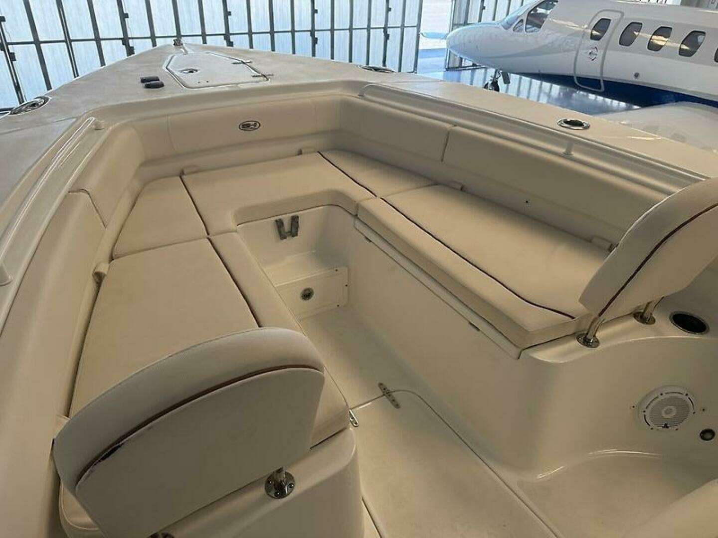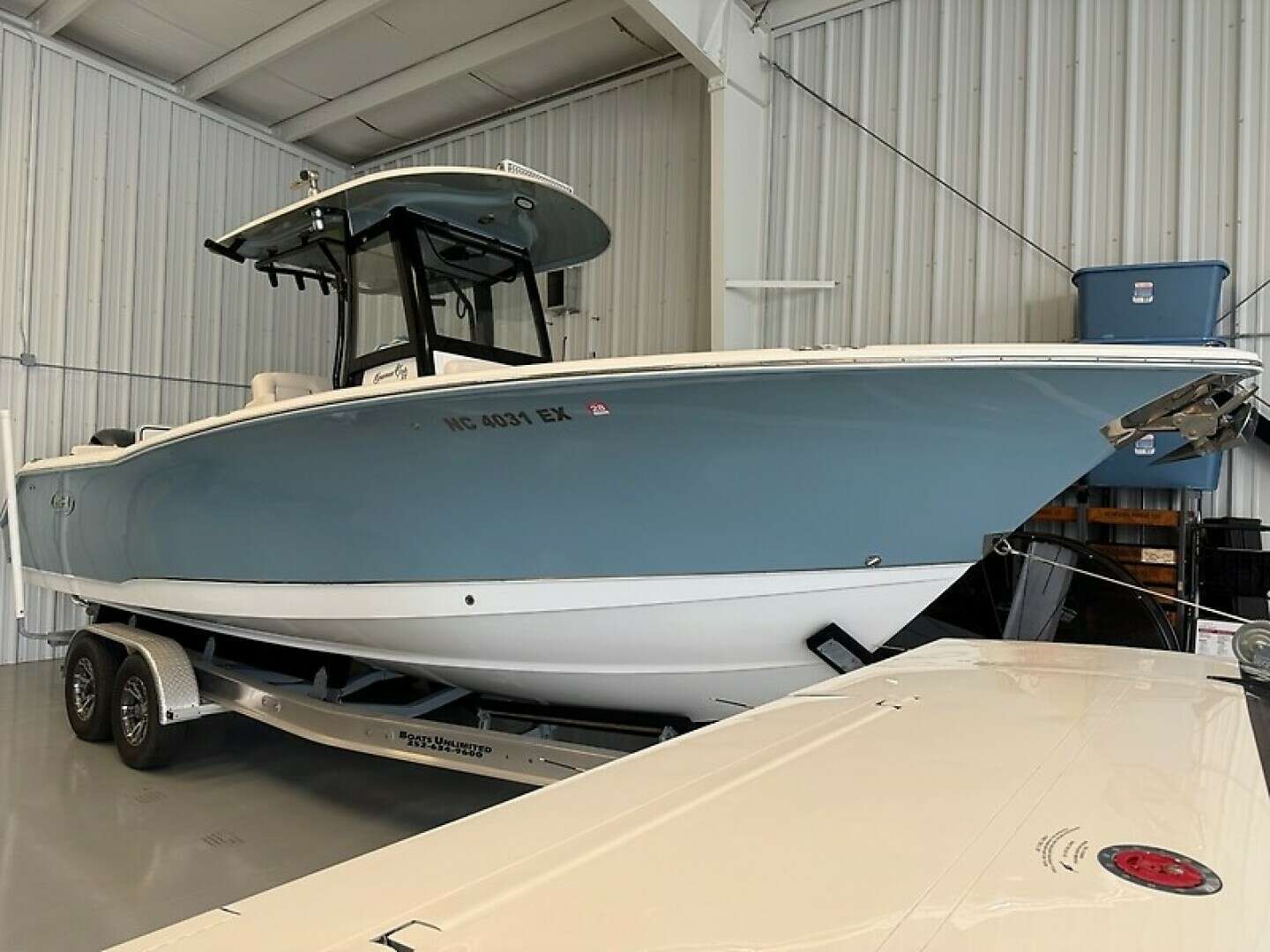 She has been kept inside and on its trailer since new. Sea Hunt has really hit it outta the ballpark with the 27' Game fish. She has all the amenities any Offshore fishing rig would need. She has more than ample storage, whether it be for fish, tackle or dry storage she has plenty. Twin 200hp Yamaha's push her along at a 30 plus mph all the while just sipping fuel. Once onboard the craftsmanship speaks volumes. This very knowledgeable owner has equipped it with an excellent Garmin pkg to include plotter, sounder, radar and auto pilot. If family cruising is in your plans, she has a plethora of creature comforts. Forward and stern seating are everywhere, a spacious marine head with holding tank and plush Captain and Companion seats only add to the comfort. And it would not be complete without an anchor windlass for day trips to the sand bar.
