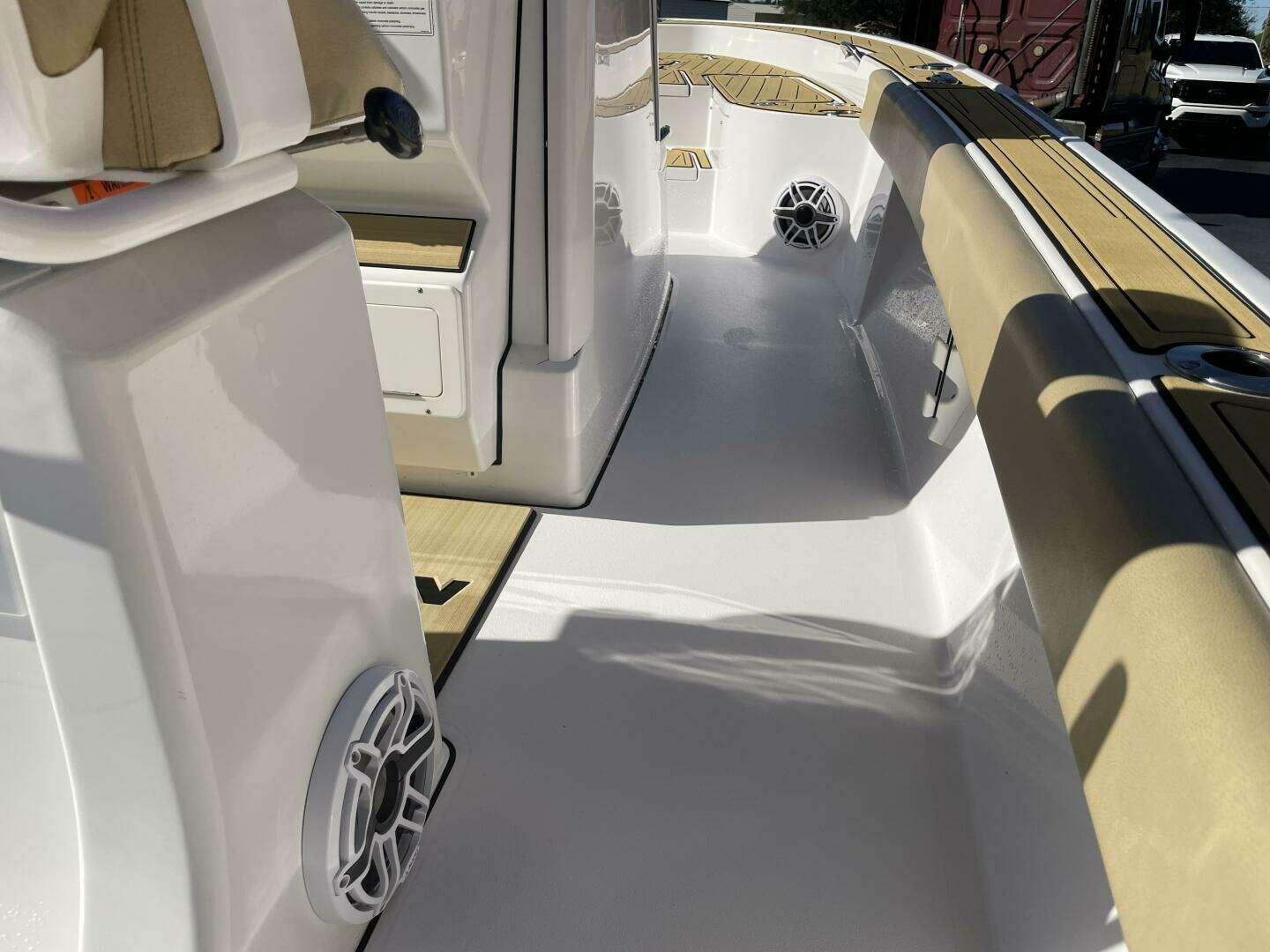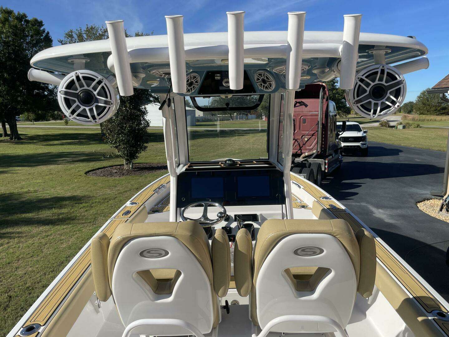 - Sound System: Immersive JL Audio setup with 14 speakers (including 2 towers and 2 subs), powered by 3 amps—over $12,000 invested for concert-quality sound on the water.