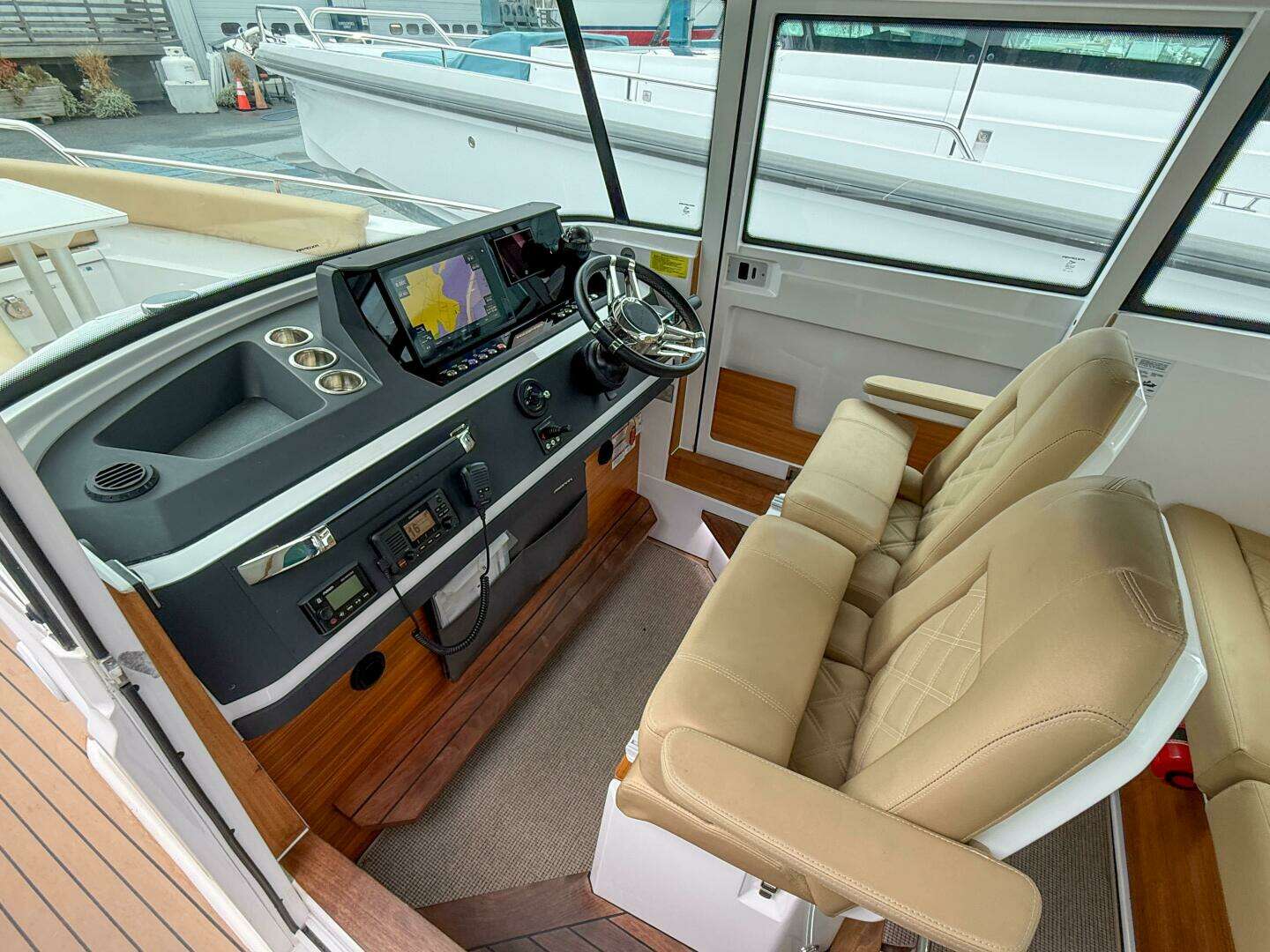 The Axopar 28 Cabin is well-known for her excellent performance and sea keeping ability in inclement weather. Enjoy the comforts of your SUV while on the water inside the protected cabin: warm, dry and comfortable with the diesel heater running or open the side doors and sunroof when the weather is nice and the boat becomes an open center console.