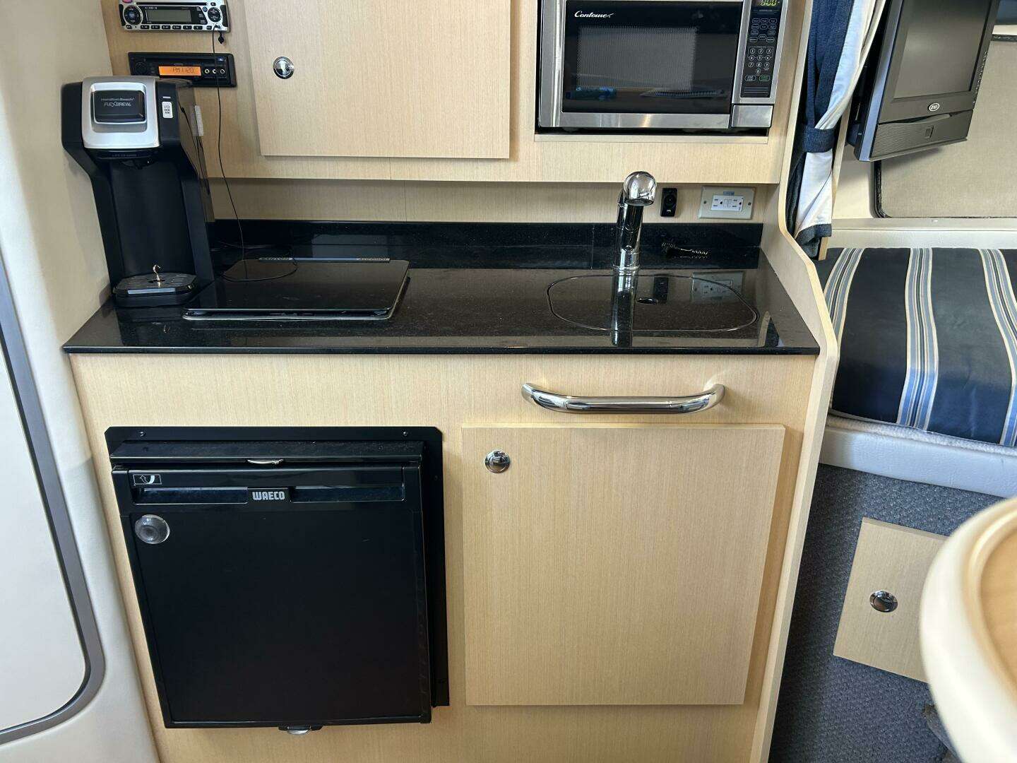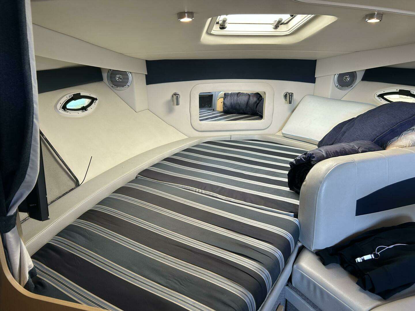 This Bayliner 285 Cruiser "Zeiger Out" is built for comfortable weekends on the water and relaxed coastal cruising. With sleeping space for up to six, a full galley, and a bright, open cabin design, this boat delivers everything you need for memorable getaways. Bayliner’s signature deck windows, skylights, and portholes bring in abundant natural light, creating a welcoming atmosphere below deck.