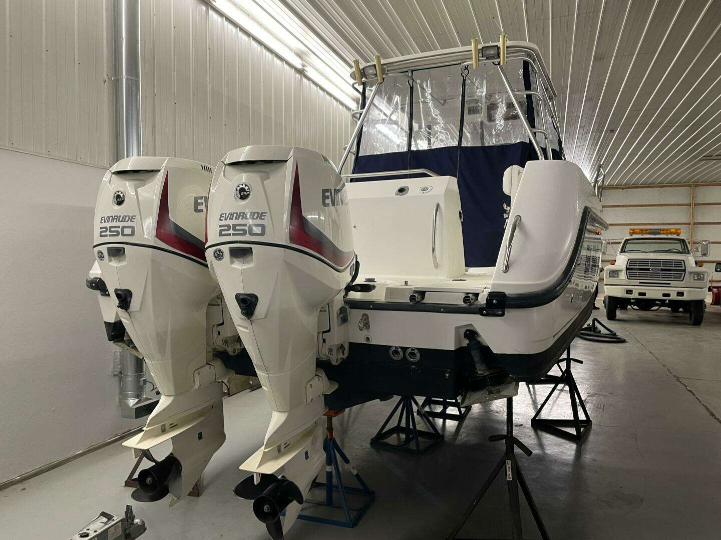 This fresh water only 2000 Boston Whaler 280 Conquest has been repowered in 2015 with Evinrude 250 ETech outboards. She is located close by our boatyard in a heated storage building and is ready for a look.
