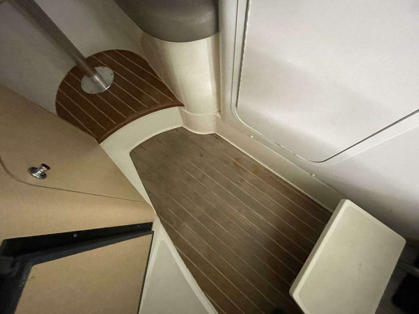 - Enclosed head with VacuFlush head, holding tank, dockside pumpout