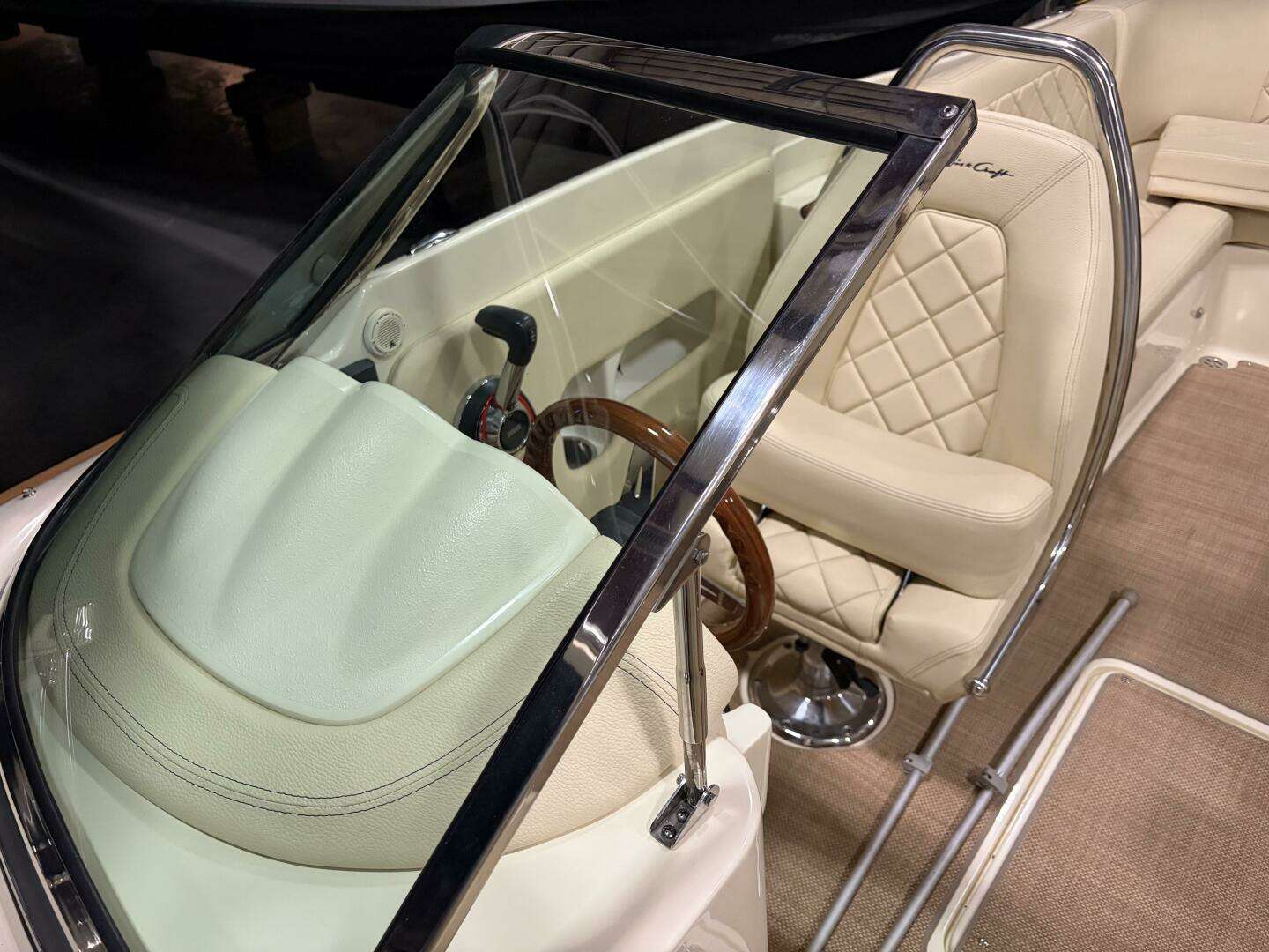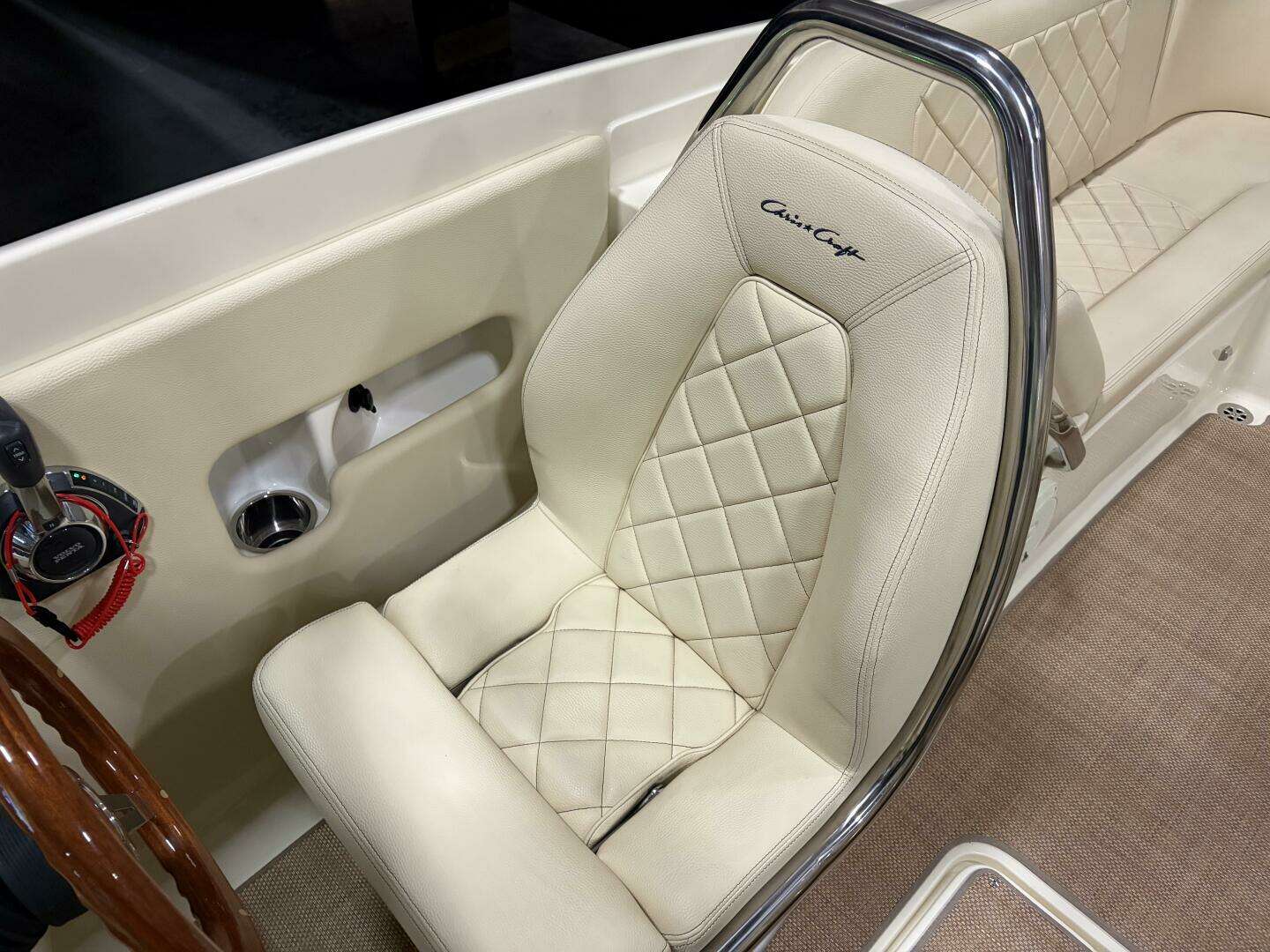 - Signature Styling: Features a sleek fiberglass hull with a deep-V design for a dry, smooth ride in choppy waters. Aesthetic highlights include a mahogany-wrapped steering wheel, diamond or "wave" stitched upholstery, and perforated stainless steel accents.