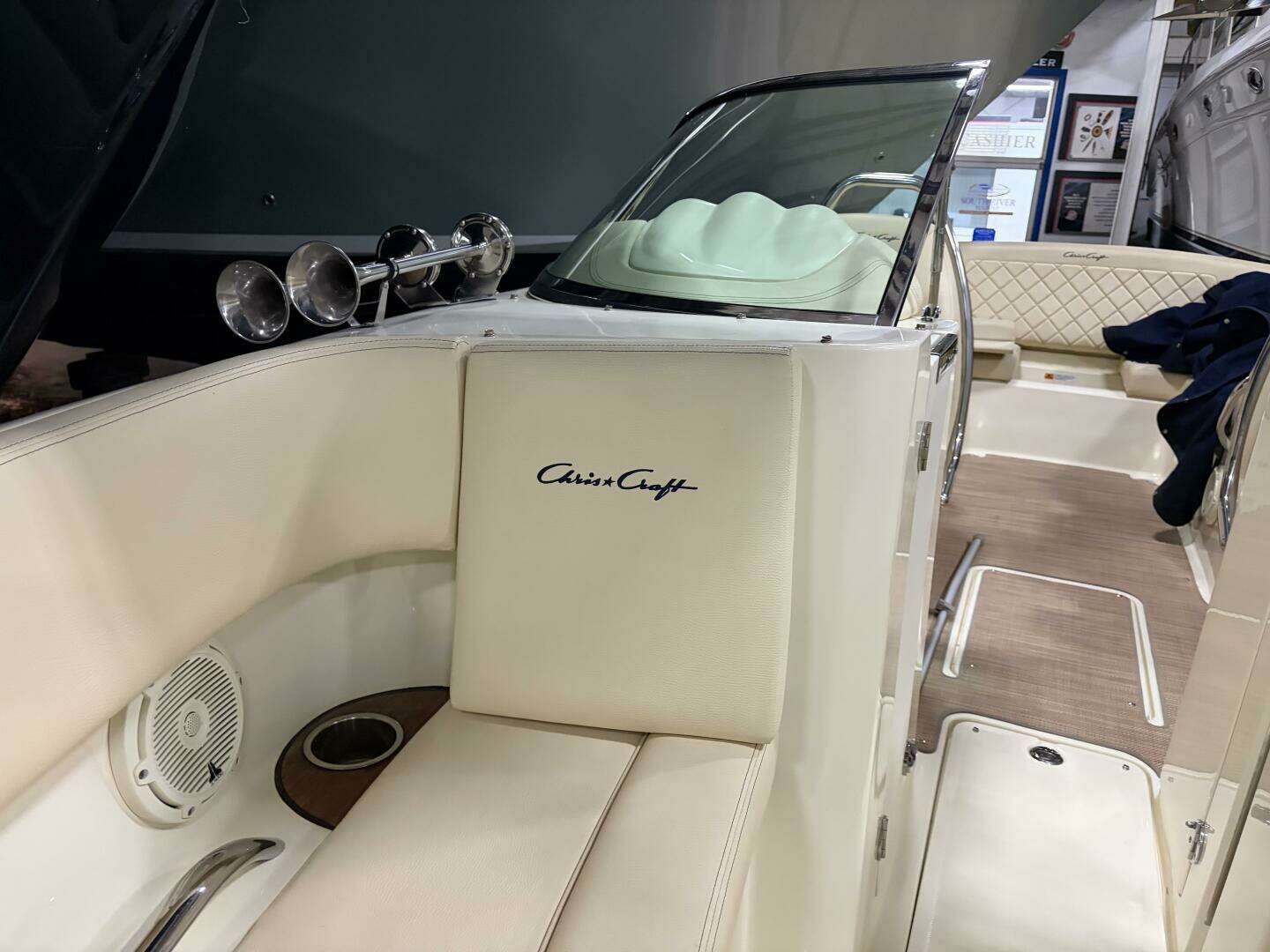This 28 Chris Craft Launch is a beautiful low hour (125) exclusive fresh water boat. She is currently located in our heated storage for easy viewing !