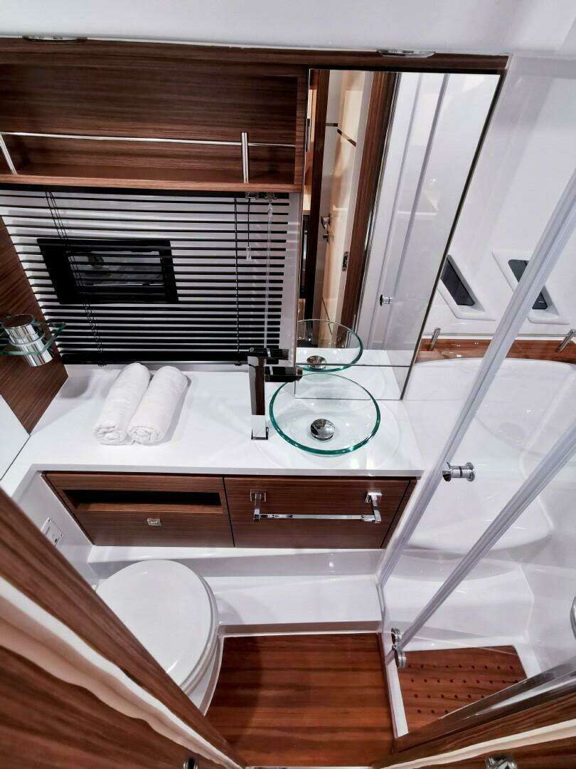 - Full bathroom/head with a separate shower cubicle, adding real comfort for weekend cruising.