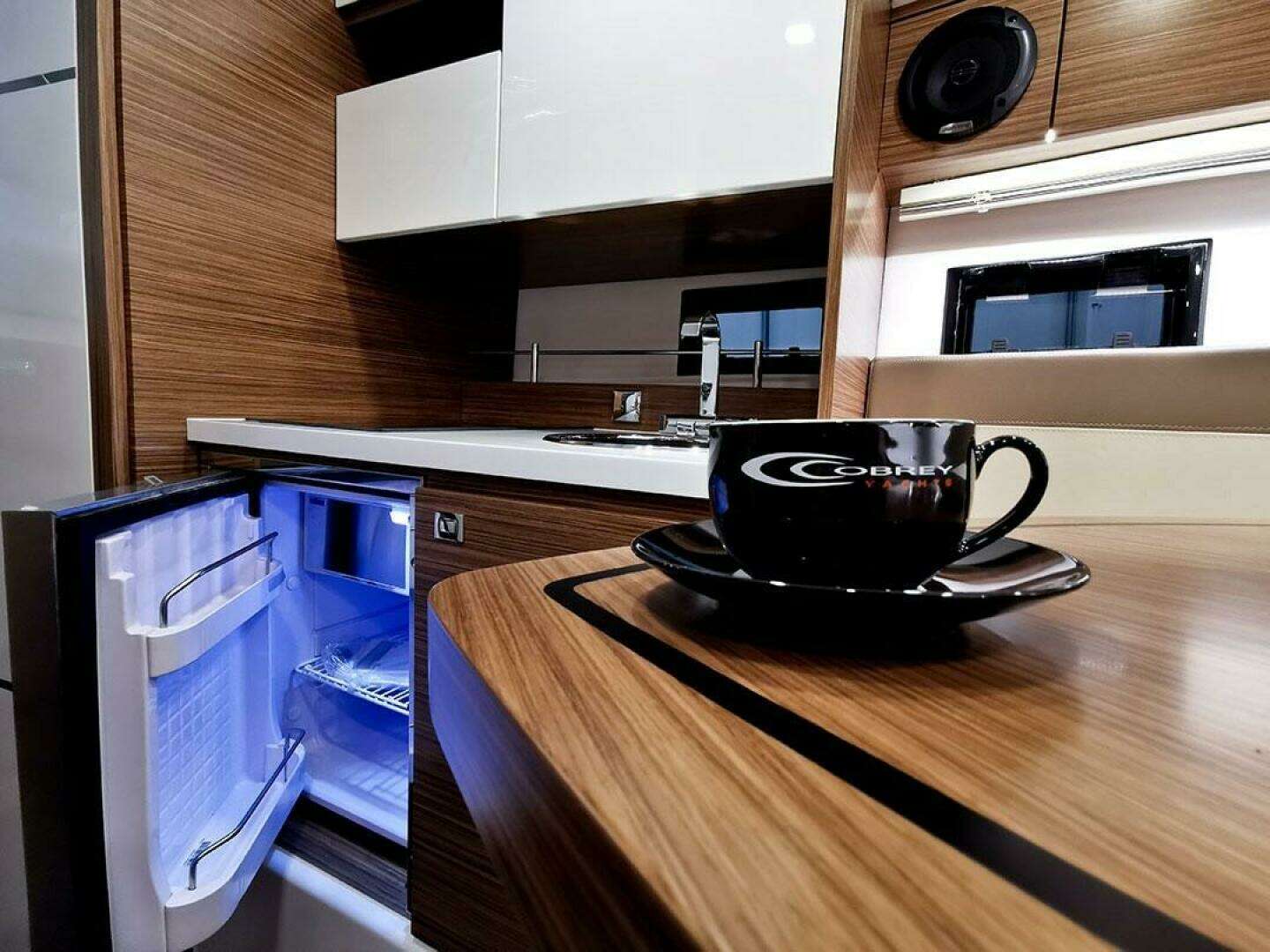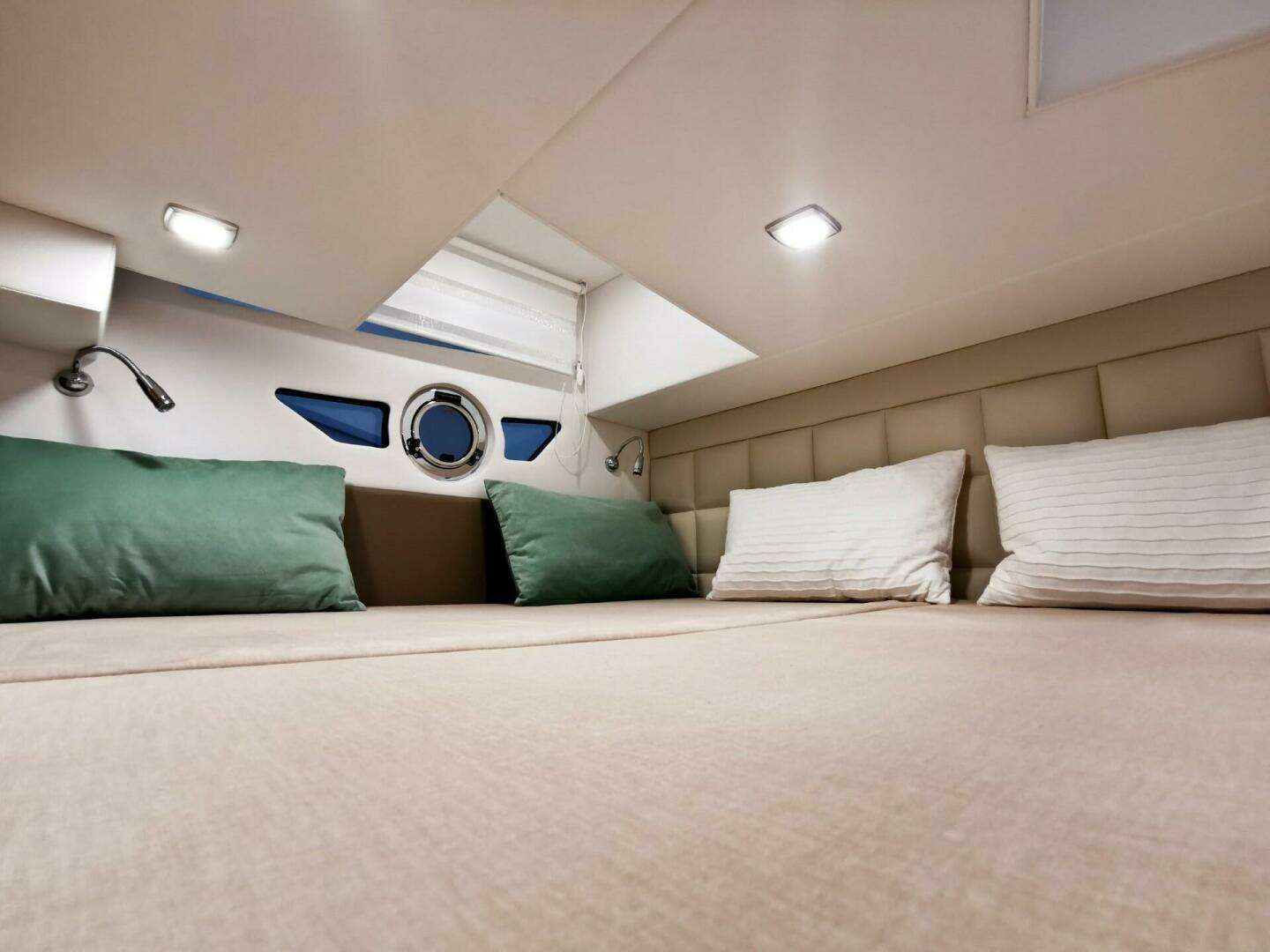 The latest Cobrey model is a further consequence of the shipyard’s vision, which aims to combine Italian design, top quality and the right price. The almost 9-meter cruiser with an open deck and a typical spoiler option, offers unique interior solutions that are not found in this class of yachts, namely a separate, spacious, closed master bedroom with an additional seat, bow bed with sleeping option for 2 persons, kitchenette and bathroom with separate shower cubicle!