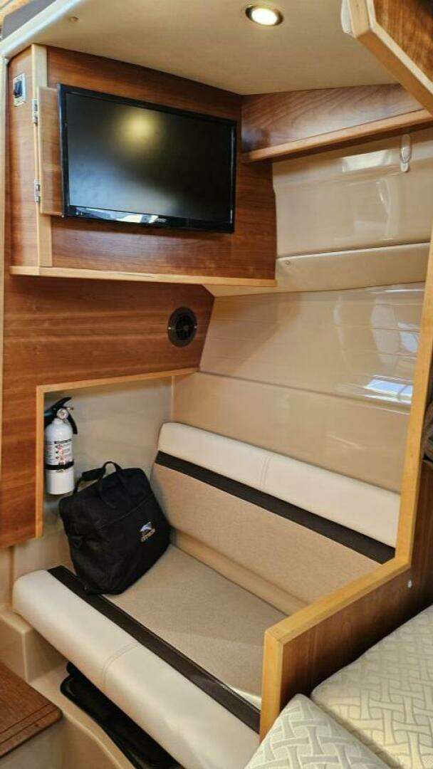 Single-engine Volvo diesel power and the exclusive Cutwater Hull design combine to deliver admirable cruise speeds and exceptional fuel economy, maximizing range. Standard bow and stern thrusters make docking a breeze. Bottom Paint January 2025