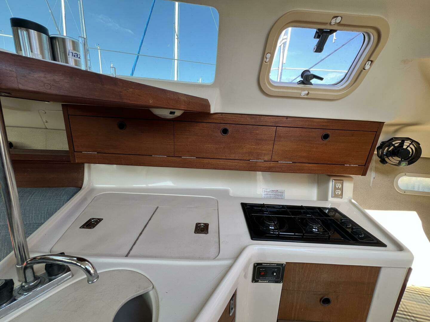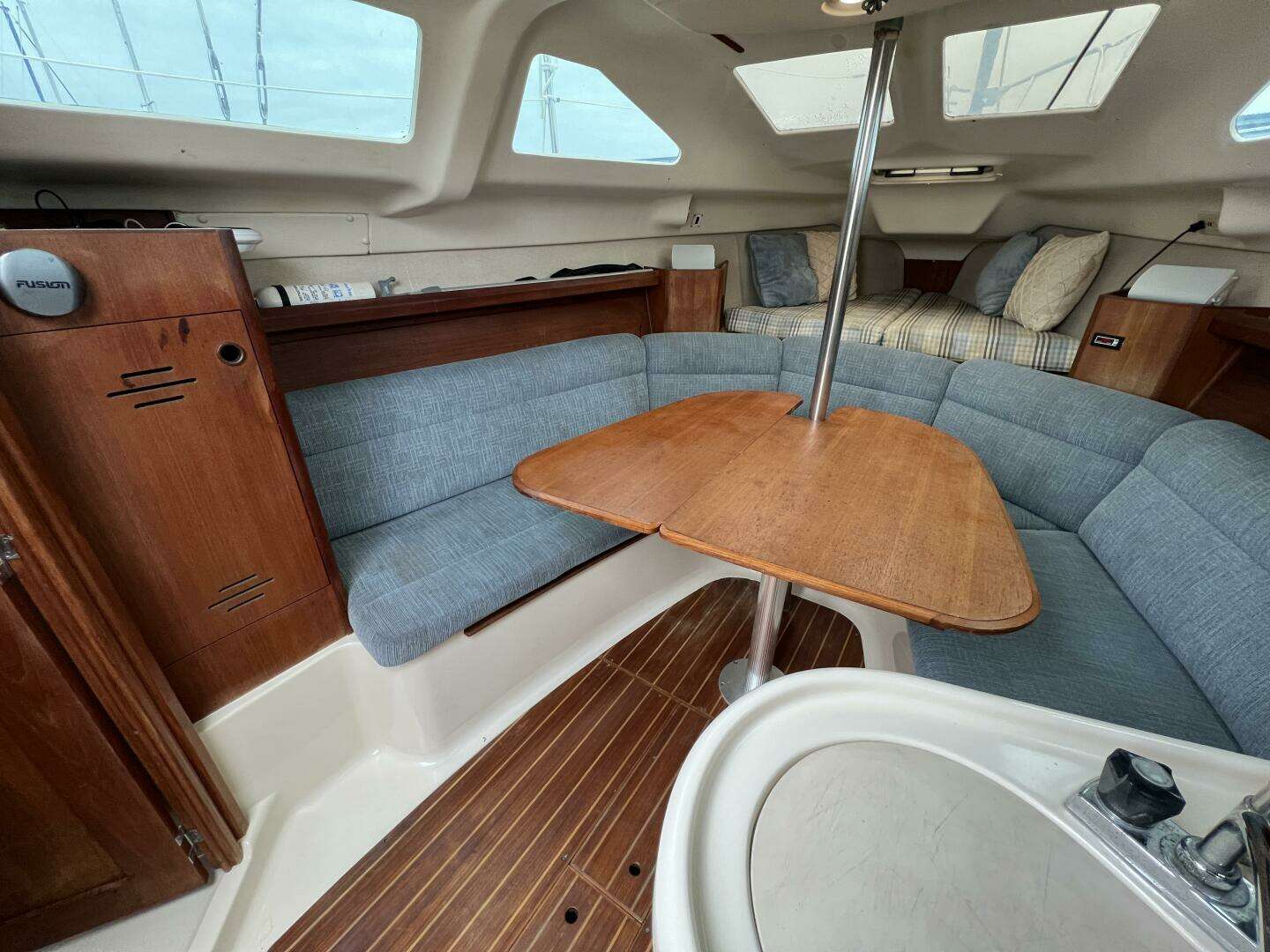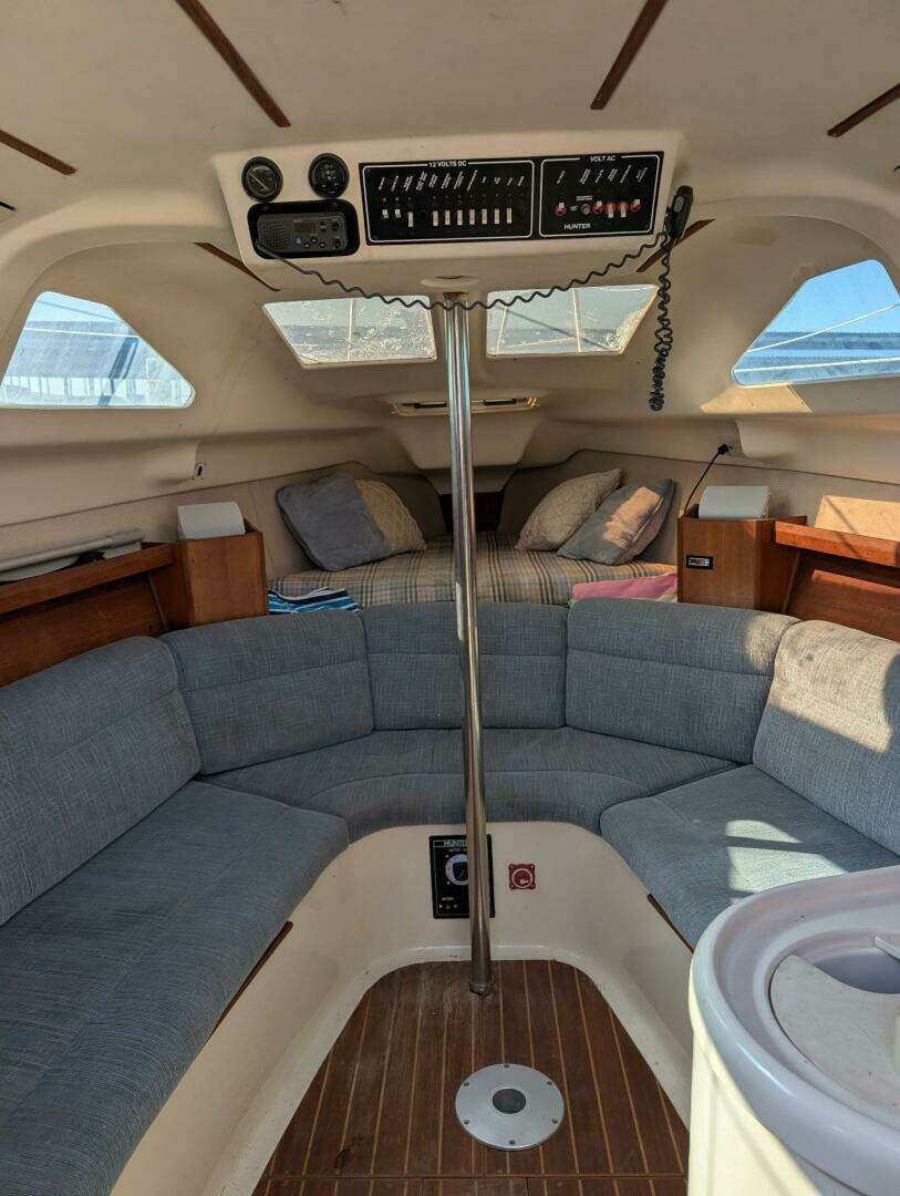 Below deck, the Hunter 280 offers a bright and functional interior with practical use of space. The layout provides comfortable accommodations for cruising, dining, and relaxing onboard.