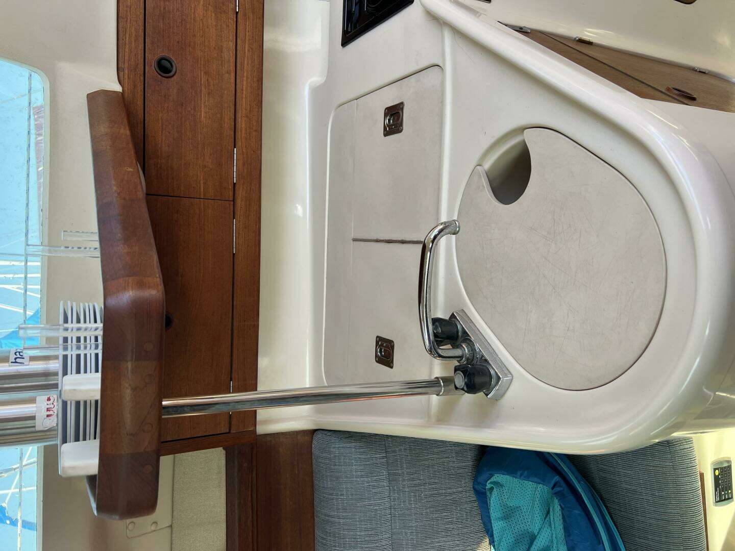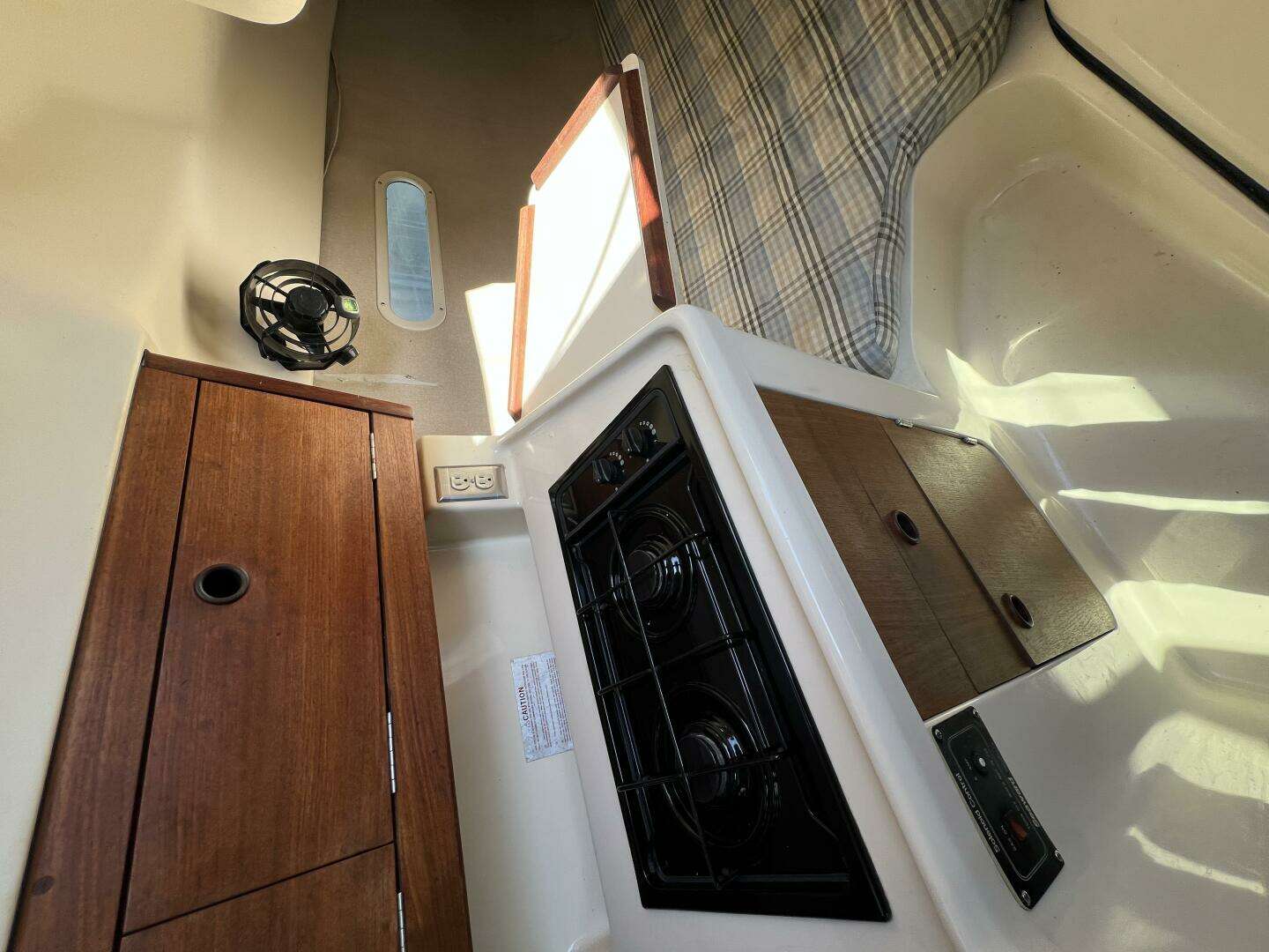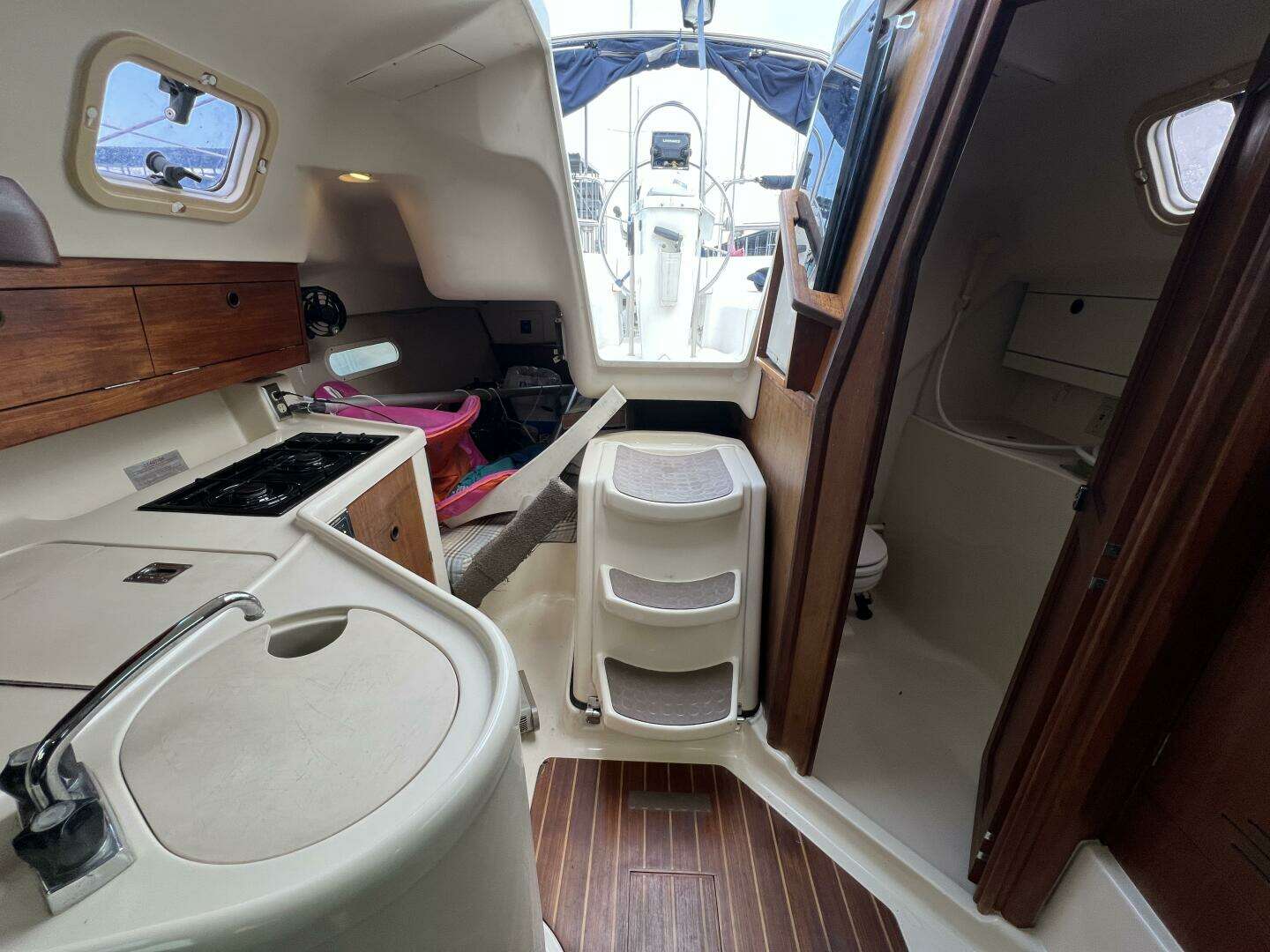Below deck, the Hunter 280 offers a bright and functional interior with practical use of space. The layout provides comfortable accommodations for cruising, dining, and relaxing onboard.