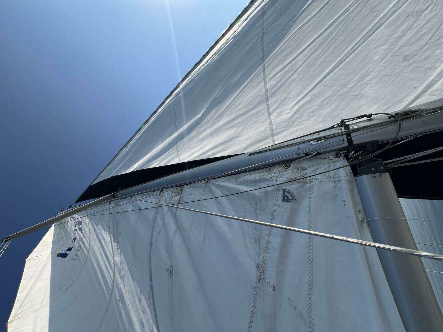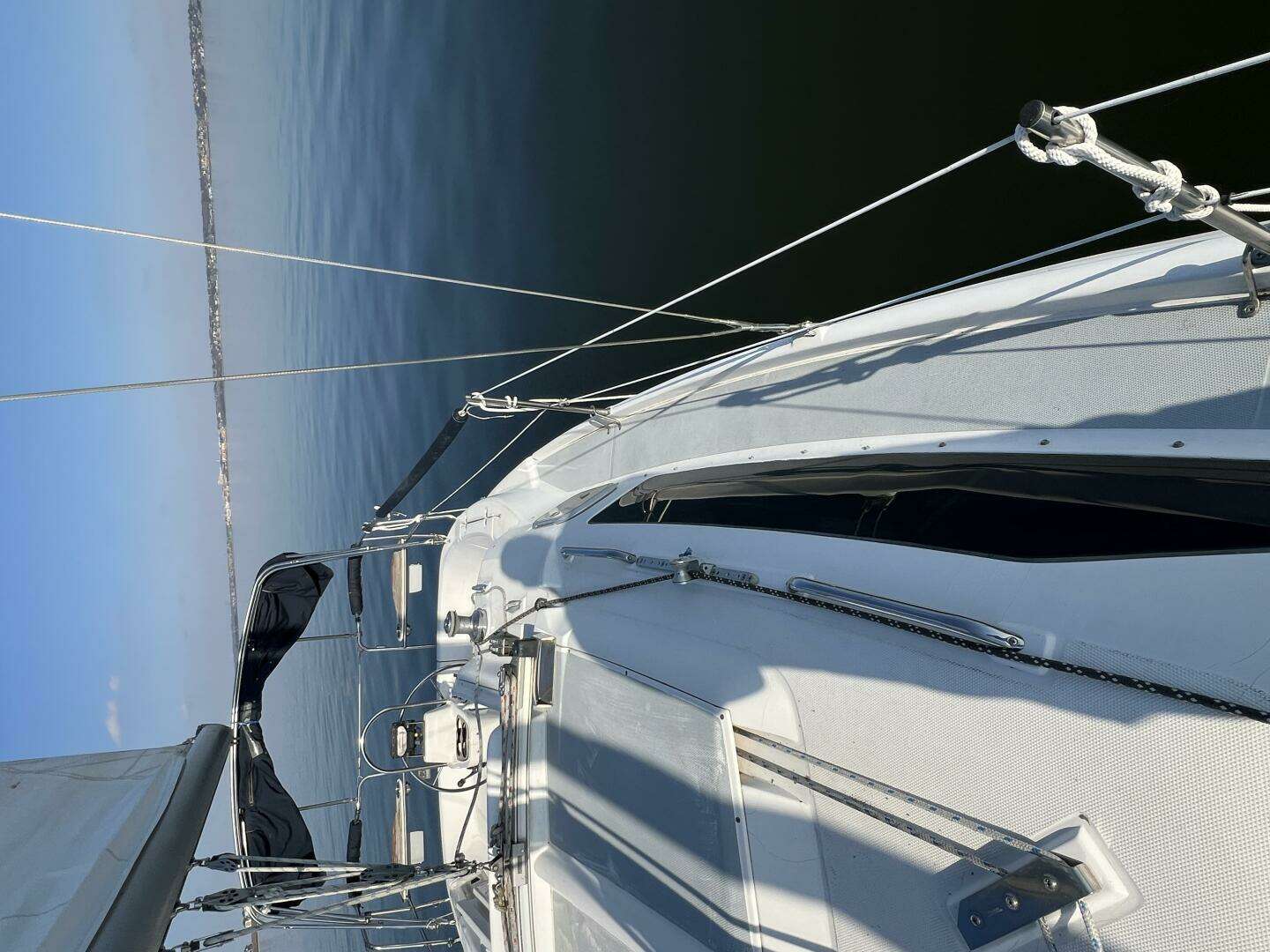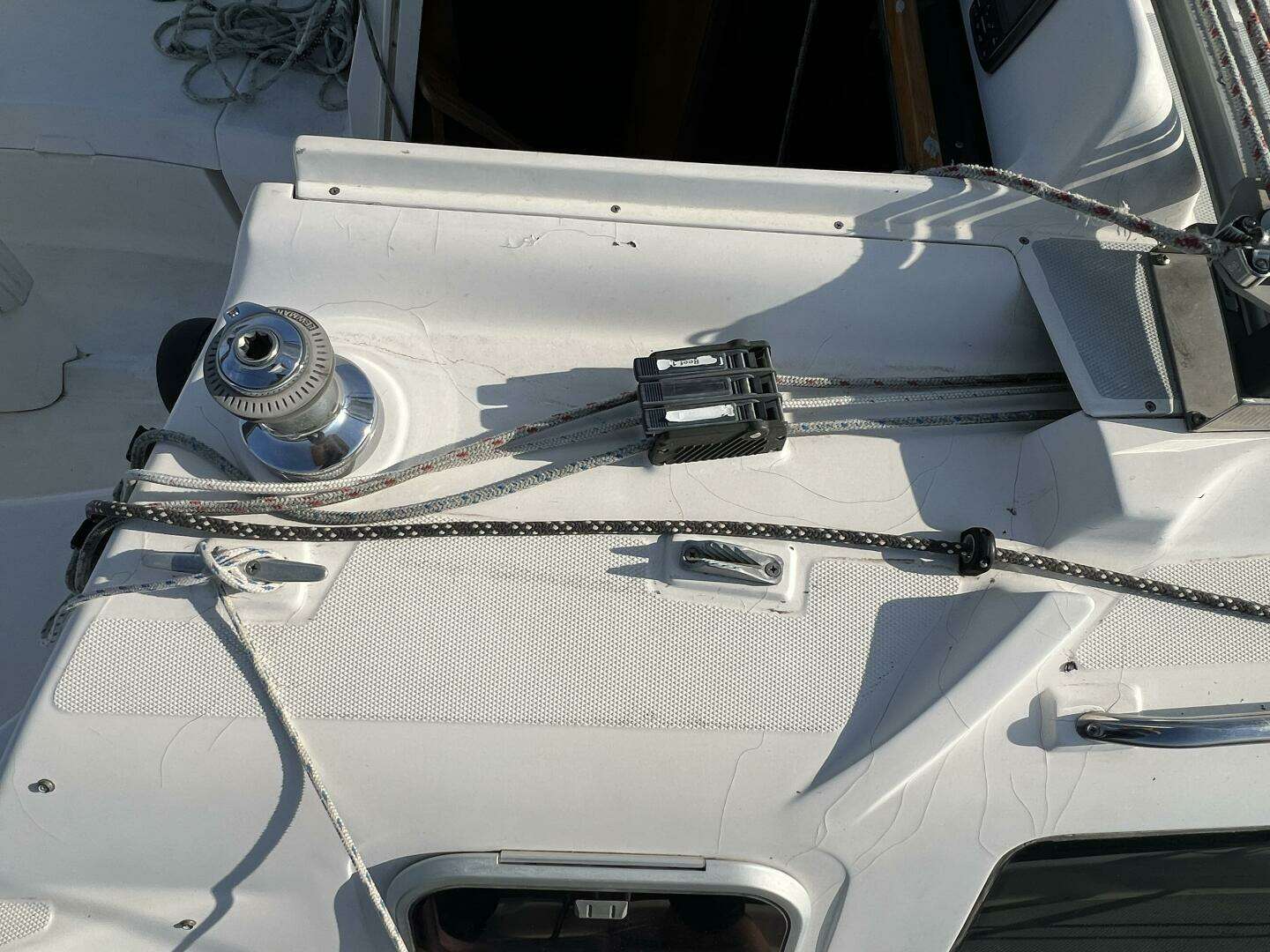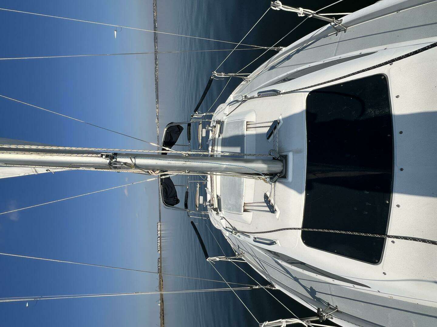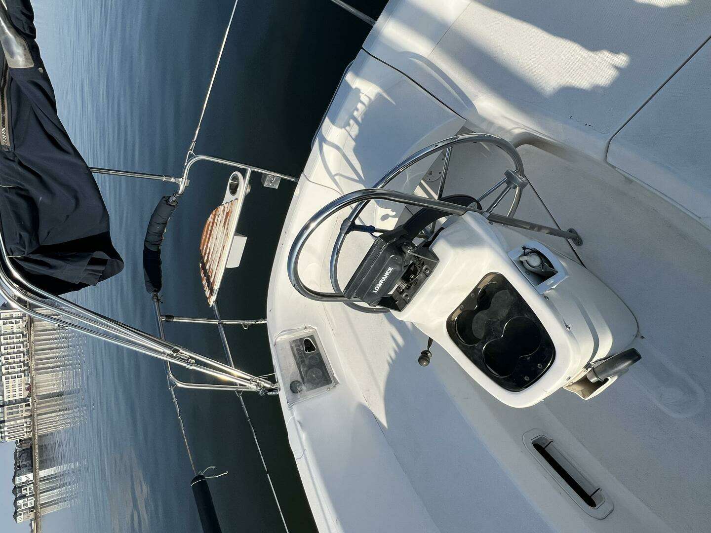 The cockpit is spacious and well laid out, offering comfortable seating and excellent visibility for the helm. Deck hardware is positioned for safe movement forward and easy sail handling.