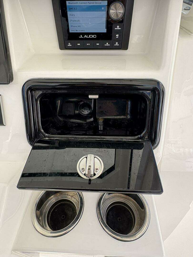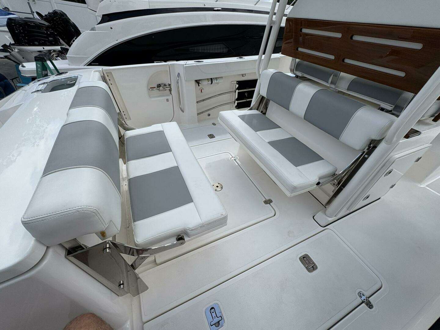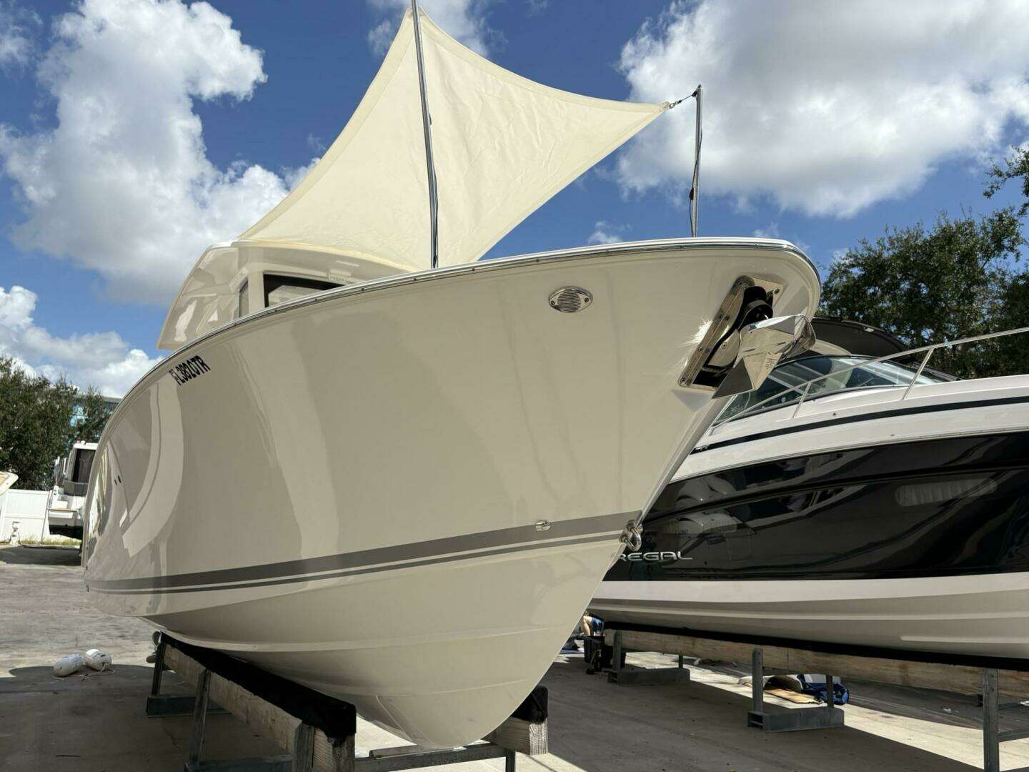 Hot Pursuit is a 2023 Pursuit S 288 Center Console that has been indoor stored since new by her experienced owners. She is powered by twin Yamaha F300 Outboards with the Helm Master Joystick Option (set point and autopilot), and extended 5 year warranties and includes all of the must have factory options including, Dual Garmin Displays, Under Water Lighting, mid-level cockpit accent lights, Premium Stereo amp upgrade, Bow filler cushions, upgraded white/gray upholstery, Bow/Cockpit fiberglass table, Bow Tow Eye, Side door with boarding ladder, Hard Top Mounted Rod Holders (6), Bow Mediterranean Style Sunshade, Canvas covers for Bow, Helm Seat and Dash.