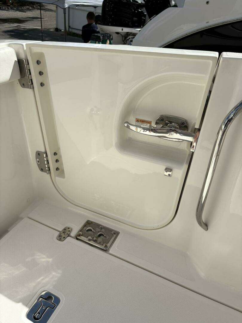 - Molded Transom Walkthrough with Hinged Transom Door (with integrate One Way High Water Door), 316L Stainless Steel Latch and Magnetic Catch