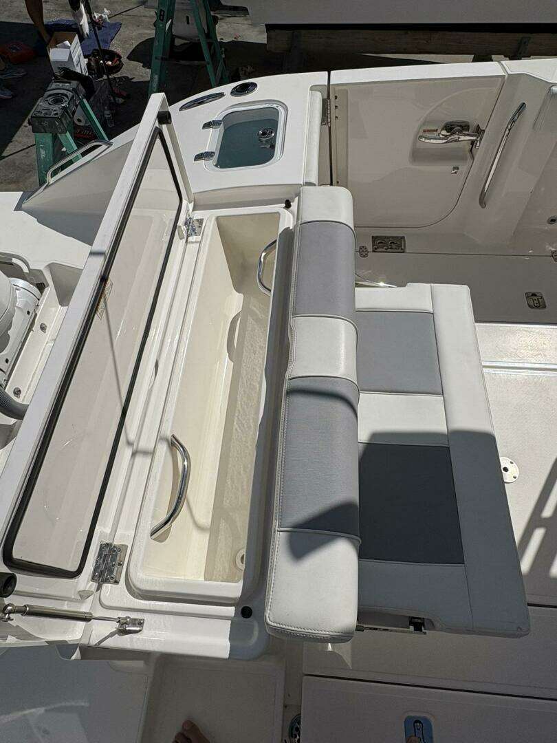 - Molded Forward Bow Seating with Insulated Storage Below, Removable Cushions, Folding Forward Facing Backrests for Port and Starboard Seats