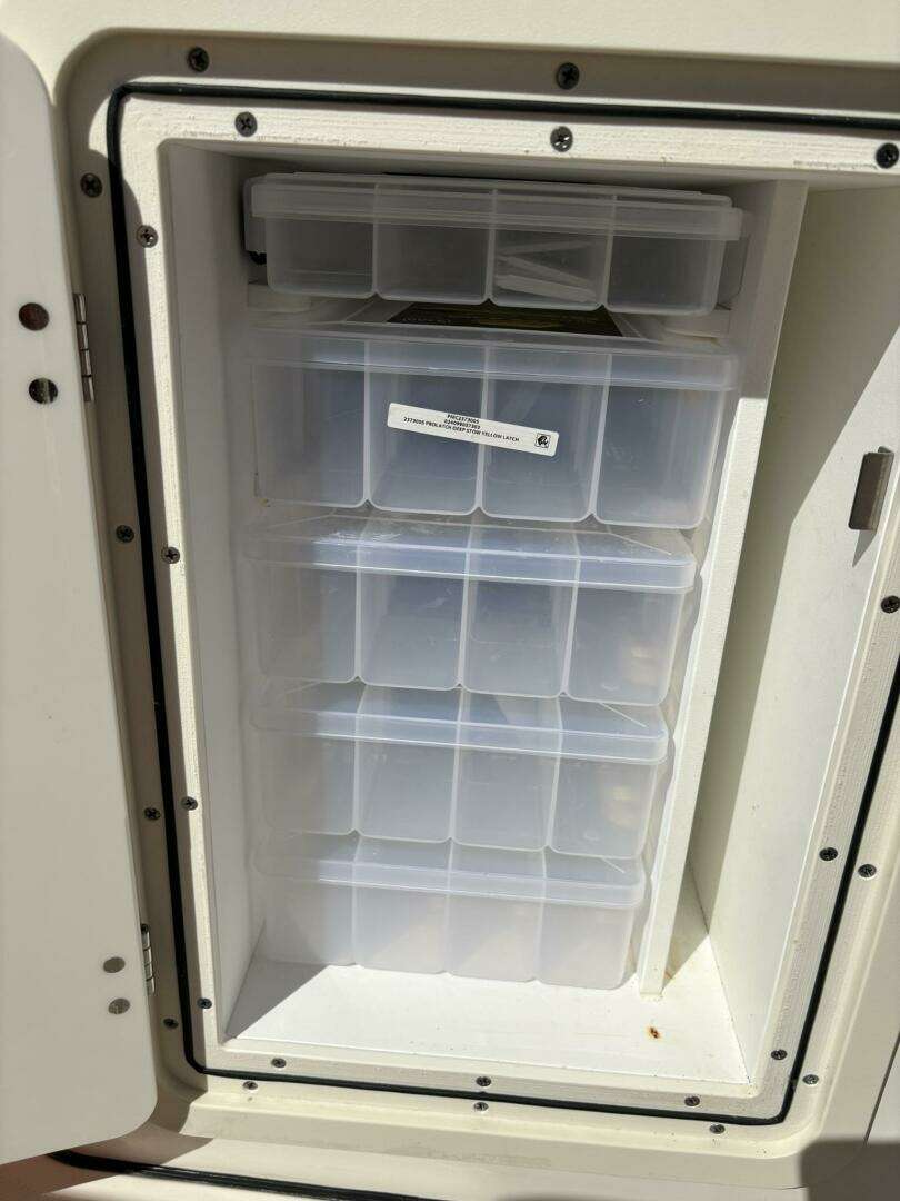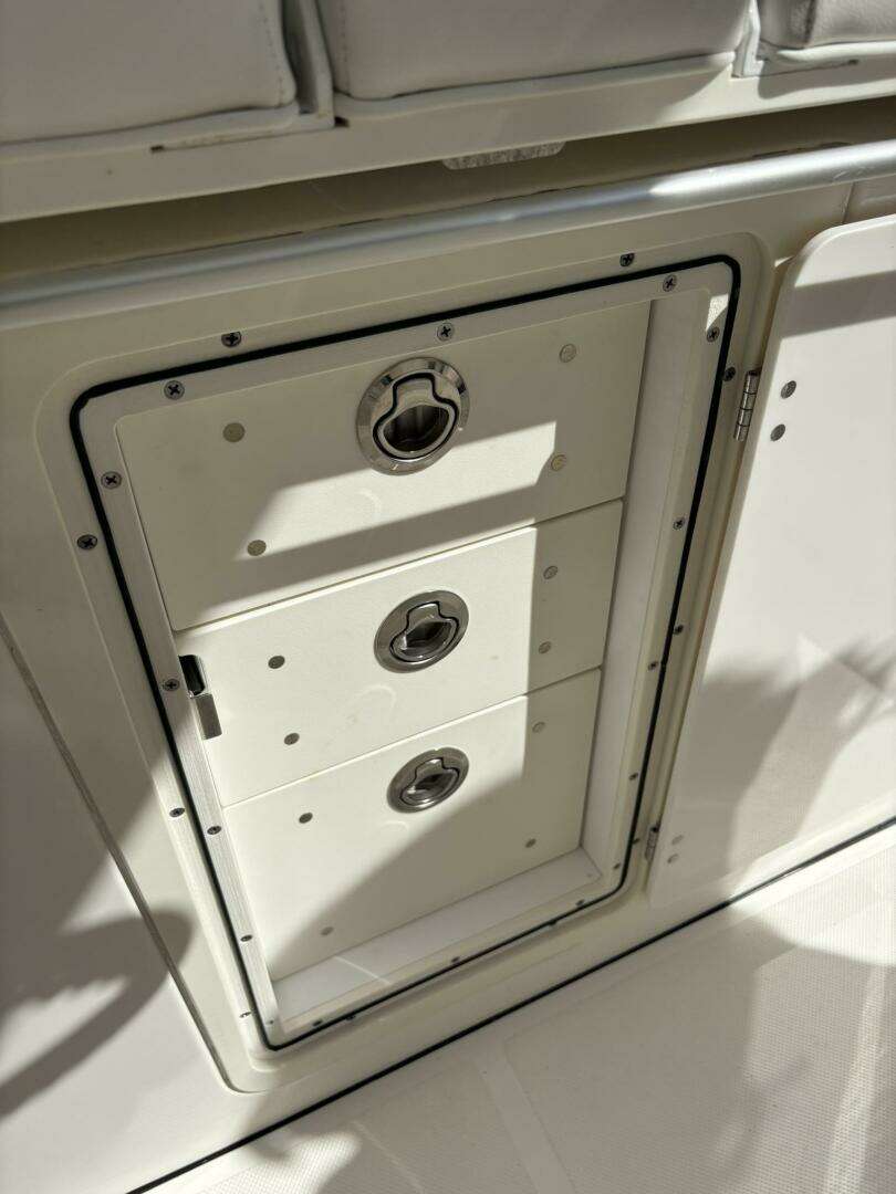 - Fish Boxes (45 gallons), Insulated and Diaphragm Pumps with Overboard Discharge (Port and Starboard)