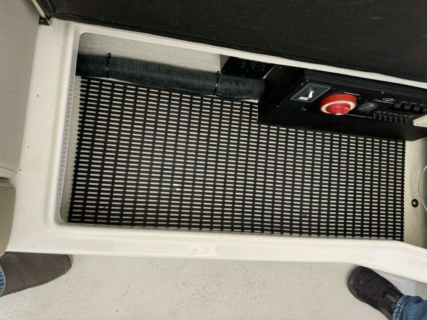 The cabin offers sleeping for 4 (including a queen-size mid-berth and convertible dinette), a full galley (with microwave, cooktop, fridge, and sink), and an enclosed head with shower—larger than many in its class.