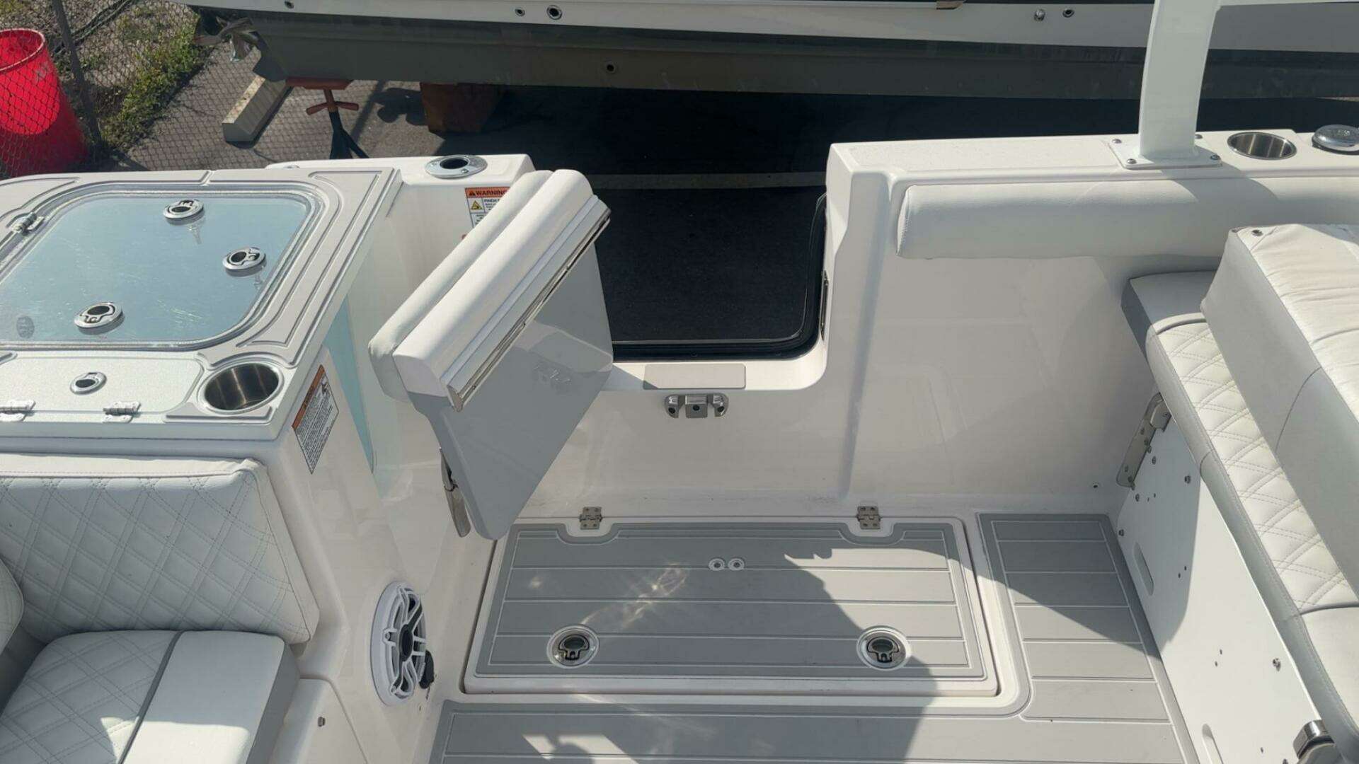 - Marine grade upholstery: antimicrobial vinyl, foam, and white diamond stitching