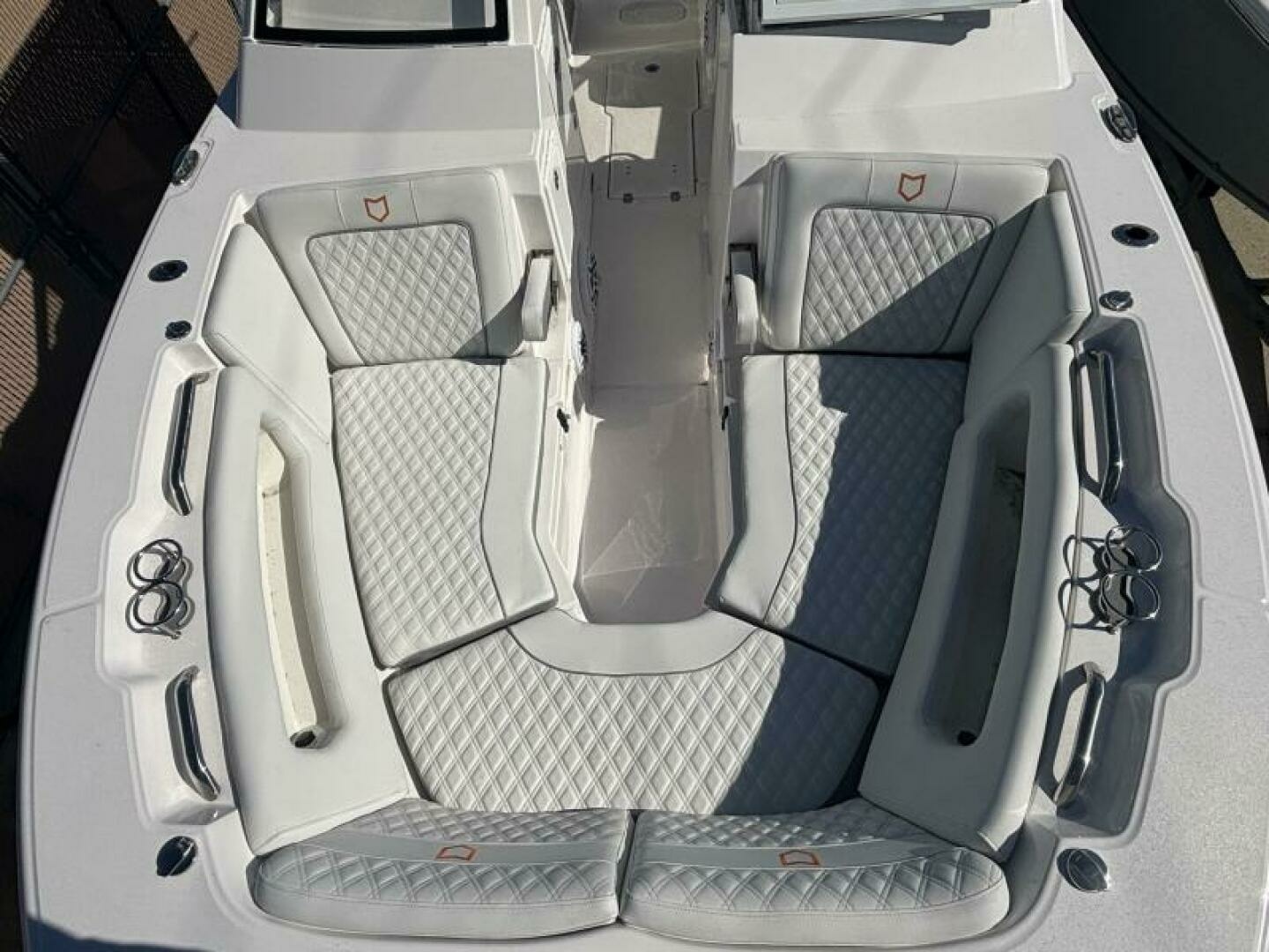 - Curved bow backrest cushions (aft-facing) with removable bottom cushions